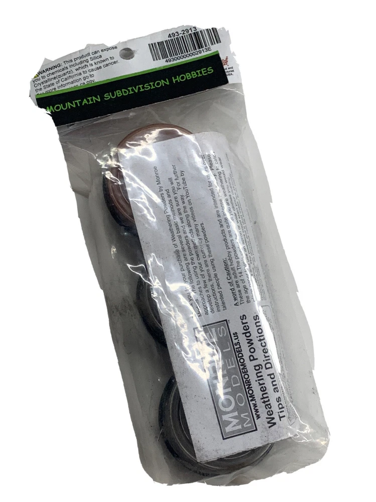 EVERY ORDER now gets a $5.00 coupon and a discount code toward a future order! (details in shipment) Mountain Subdivision Hobbies modelrrsupply Monroe Models #2913 Weathering Powder Set "Grime & Rust" 3-Pack 3/4 ounce each color Soot Black Ash Gray Dark Rust _____________________________________________________________________________ Questions, Special orders, Inventory requests: Please contact us using eBay's message system. Your shipping address : IMPORTANT!! Please confirm your shipping address is correct before making payment. You know where you live, we don't! eBay does not allow us to change an address after payment is made. If you ask us to change address, it will require us to cancel your order, ask you to correct your address and redo order. Combined Shipping: International Due to eBay's new policies, they require us to require immediate payment on your purchase. PLEASE use the eBay shopping cart - it may save you money! In the event eBay overcharges you for shipping, we will send a refund for the correction. Combined Shipping Discounts: USA Due to eBay's new policies, they require us to require immediate payment on your purchase. PLEASE use the eBay shopping cart - it may save you money! If we issue a credit for overpayment of shipping, we may deduct a portion of the overpayment to cover eBay fees. eBay DOES NOT refund the fees we pay based on shipping charges if we issue a refund for shipping! Paid orders may be combined or ship as seperate orders with no shipping refund. USA Shipping: We ship using USPS First Class, Parcel Post, Priority Mail, and occasionally FedEX. We may upgrade your shipping method at our discretion. Tracking is provided. Orders over $750 will require a signature per Paypal rules. International Shipping, Customs Fees, Import Taxes and Duty: We ship USPS First Class International and Priority Mail. It's your choice! There is limited or no tracking on FCI or Flat Rate Priority Shipping. Allow two to ten weeks when choosing First Class International, but it's usually far less. Please Note: Import duties, taxes, and charges are not included in the item price or shipping cost. These charges are the buyer's responsibility. Please check with your country's customs office to determine what these additional costs will be prior to bidding or buying. Don't ask us to falsify a customs form...We will not do it. Insurance: We insure all International shipments and some domestic shipments. Our insurance carrier requires a 20 day domestic (USA) and 40 day International waiting period before we file a claim. You agree to wait the required time and agree to complete a online affidavit for the insurance company if we file a claim for your lost or damaged shipment. Shipsaver is our carrier and they provide excellent service. Handling and Shipping time: WE SHIP FAST! All orders ship same or the next day. In the event of an issue, we will message you via eBay message system. Read our feedback page to see what our customers say about us. Please be aware USA Shipping Holidays may affect International Shipments. Sales Tax: New York Residents will be charged Sales Tax - It's the law. Returns: No returns are accepted on opened items. All items we sell are covered by Manufacturer Warranty. D o not open a return case for defective items, Contact us FIRST, we'll work it out. A restocking charge of 15-20% may apply. We do not refund original shipping charges. Please review the return policy on the shipping tab. Warranty? New or Used?: Everything we sell is brand new and covered by Manufacturer's Warranty unless noted. We will assist you in the warranty process if needed. We only sell brand new items - Our items are all factory fresh! Thanks for choosing Mountain Subdivision Hobbies Supplying modelers with items from premium model railroad & DCC manufacturers since 2002