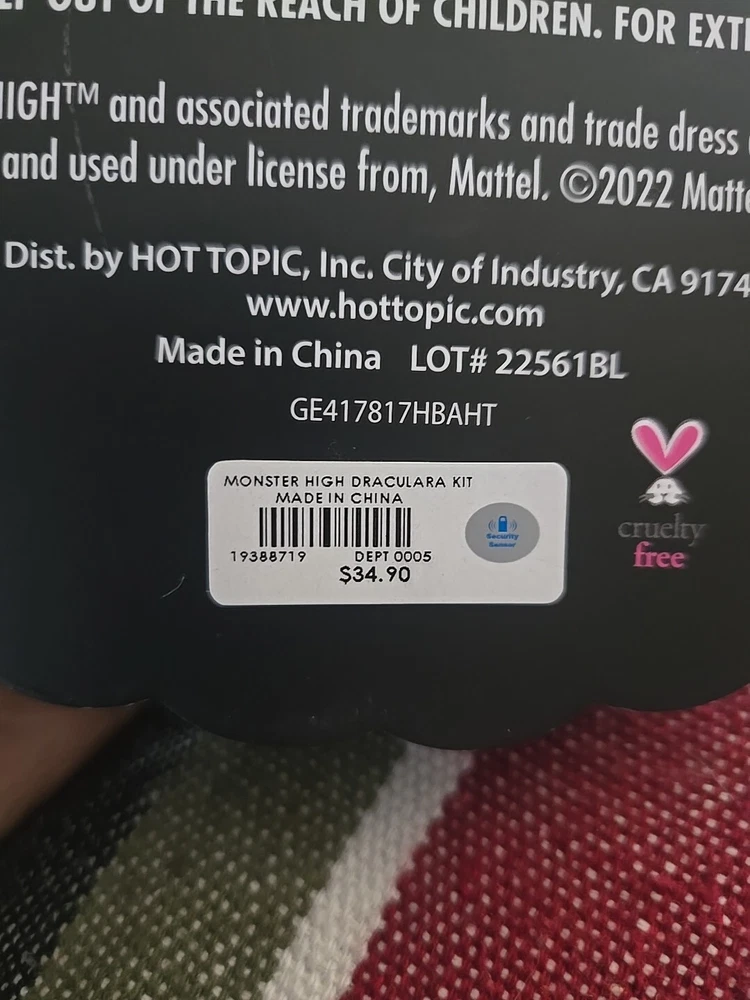 Formulation:N/ACoverage:N/AFeatures:Animal Cruelty-FreeCountry/Region of Manufacture:ChinaBrand:Mattel Hot TopicActive Ingredients:N/AMakeup Shade:AssortedMPN:N/APeriod After Opening (PAO):N/AMaterial:N/AAlphabet Cream Type:N/ASkin Type:AllNumber of Items in Set:N/ASize:11” X 7 1/2”Effect:N/ALash Length:LongSet Includes:Eye ShadowColor:MulticolorDepartment:Women