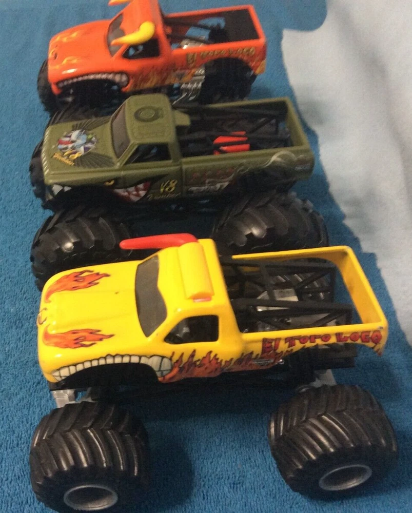 Hot wheels & Spinmaster Lot of 3 Monster Trucks For those new to my site, I started collecting comic books in 1978 and over the years expanded into other areas including cards of all types, statue, plates and other items, but I had to retire several years ago and now need to downsize and clean out my entire collection. This includes toys and comics and my basically everything in my entire house. My nieces and nephews do not want my collection, and I am trying to find new homes for a lot of items. Including my most prized collection, which is my comics, as a person who grew up with dyslexia (even though they didn't call it that back in the 1960's and 1970's), my comics where how I learned how to read. Again, all items are from my home and since I am trying to find new homes, I am not offering returns. If there is any type of collectable particularly comics that you might be interested in, I may have it, thank you again for checking my site and please check back again. I usually offer combined shipping on almost all my comics listed on my site.