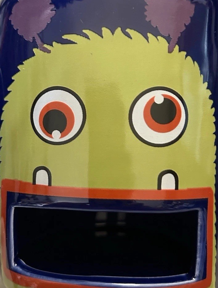 This fun and quirky mug is a must-have for cookie lovers! The monster mouth slot holds snacks perfectly, and the 8oz size is great for cocoa or coffee. It’s in excellent condition, just as described, and the seller ships eco-friendly. Super cute and functional—love it!