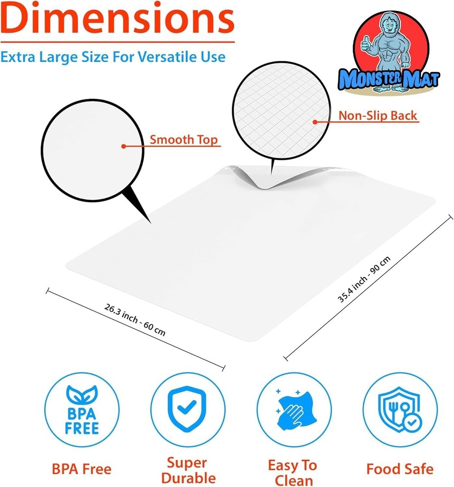MonsterMat Extra Large Flexible Kitchen Ultra Thin Cutting Board 35"x24" NEW Condition: Brand New Description: ?????????? ?????????? (???????????? ??'????'!) ?????????????? ?????? – This very large, flexible plastic sheet is perfect as a kitchen cutting board or a large cutting mat for kitchen use. It provides ample space for chopping, slicing, and crafting. Ideal for those looking for cutting boards for kitchen dishwasher safe. ?????????????? ?????????????? ?????????? ?????? ?????????????? – Made from high-quality, BPA-free plastic, this large cutting board dishwasher safe is designed to handle all your food prep tasks. Ultra thin cutting board is ultra large and is perfect for slicing, dicing, and chopping on your kitchen counter. ???????????????? ?????????????? ???????? ?????? ???????????? – Use this flexible plastic sheet as a craft mat for quilting, sewing, and other hobby projects. It's the ideal cutting pad for detailed work like scrapbooking or fabric cutting. ??????-?????????? ?????? ???????? – This non toxic kitchen cutting board is BPA-free, making it safe for food prep. It’s also a great plastic cutting board for kitchen tasks, offering a hygienic surface that’s easy to clean and maintain. ??????????-?????? ?????????????? ?????????????? ?????????? ?????? – Perfect as cutting mats for kitchen, craft cutting mat, and chopping board. A versatile plastic mat for various tasks, and a great option for cutting board dishwasher safe in the kitchen or as a cutting mat for sewing. Powered by SixBit's eCommerce Solution Powered by SixBit's eCommerce Solution