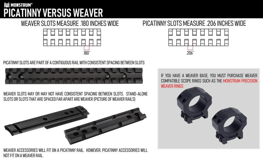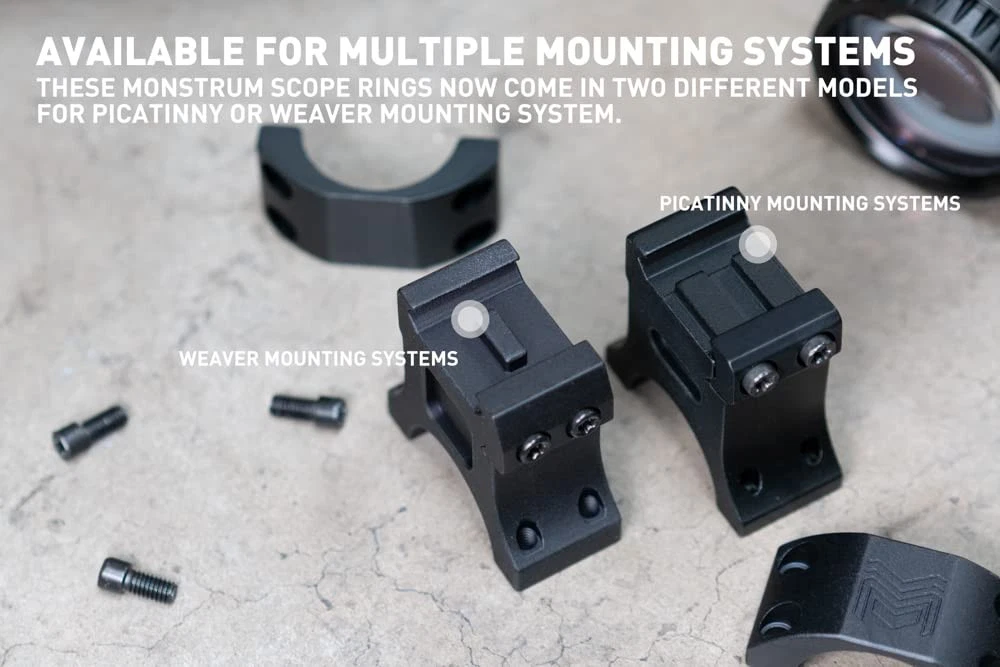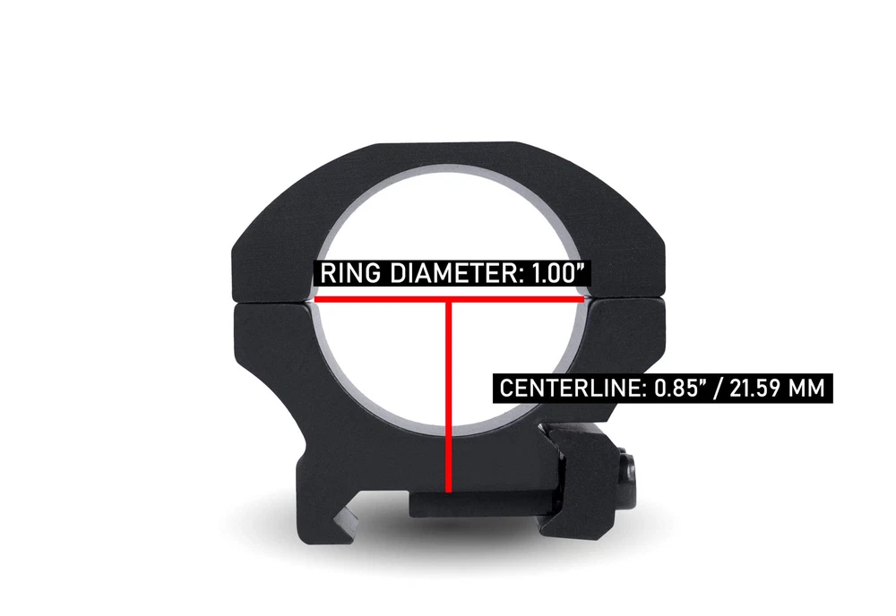 0.80 inches in height, measured from the center of the rifle scope tube to the bottom plane of the Picatinny rail mount Monstrum Precision Scope Rings are precision crafted to a given height specification to match your particular rifle setup and preferred cheek weld 1 inch diameter rings for mounting standard 1 inch rifle scope tubes Available with either Picatinny or Weaver standard base Available in four heights to match your needs: 0.80 inch, 1.00 inch, 1.20 inch, and 1.35 inch