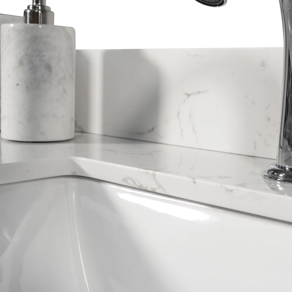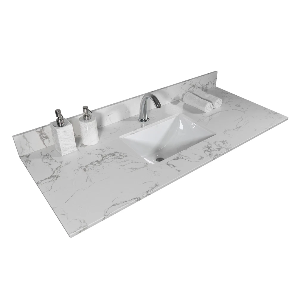 The vanity tops are made of beautiful Engineered stone. All exterior sides are polished for a luxurious look. Each model is complemented with a ceramic Rectangle undermount sink. The matching backsplash is included in each package. Product incude : Stone vanity top + backsplash+ceramic sink [DIMENSIONS] Exterior Dimension 43 inch wide x 22 inch,deep Fits Most Standard 42-in W x 21-in D vanity cabinet 4 inches center faucet holes [Material] Enginnered tone Stone top Size:43X22x3/4 inch [Elegant & Stylish Top] Warmly elegant and stylish Carrara marble vanity top complement most Bathroom designs and coordinate with both light and dark cabinetry High-end and classic natural stone top Pre-sealed and Polished for added protection [Easy to Installation] Top p... Bathroom Montary 43x22"bathroom stone vanity top engineered stone carrara white marble c The vanity tops are made of beautiful Engineered stone. All exterior sides are polished for a luxurious look. Each model is complemented with a ceramic Rectangle undermount sink. The matching backsplash is included in each package. Product incude : Stone vanity top + backsplash+ceramic sink [DIMENSIONS] Exterior Dimension 43 inch wide x 22 inch,deep Fits Most Standard 42-in W x 21-in D vanity cabinet 4 inches center faucet holes [Material] Enginnered tone Stone top Size:43X22x3/4 inch [Elegant & Stylish Top] Warmly elegant and stylish Carrara marble vanity top complement most Bathroom designs and coordinate with both light and dark cabinetry High-end and classic natural stone top Pre-sealed and Polished for added protection [Easy to Installation] Top pre-drilled for faucet Assembled stylish rectangular white vitreous china under mount bowl with safety overflow hole This top is perfect for quick and easy remodels Obtain the beauty and durability of marble without hiring a professional [PACKAGE INCLUDED] Vanity top with assembled rectangular under mount bowl matching 4inch high Backsplash Besides extremely solid package - very firm carton box with foam is used to transport top making sure a safe delivery (Attention) Faucet and side splash NOT included Item Specifics Item Length As described Item Width As described Item Height As described Item Weight As described Color Grey Material Stone Type Bathroom Vanities Brand Unbranded Payment If you do not have a PayPal account, to get started and buy your first item with us is very easy. Simply click on the 'Buy It Now' button and follow the eBay checkout steps. Select PayPal as the payment method you then will be given the chance to enter your card details in to PayPal's secure checkout in order to pay for your order. Shipping 1. Your purchase is shipped directly to you as soon as we have received your cleared payment. 2. Normally all of parcels would be shipped within 3days(From Monday to Saturday). 3. We will send information on eBay or email if the parcel was delayed due to our holiday. 4. We provide three kinds of shipping for choice. Shipping way depend on delivery address. Returns If an unit is received defective, of course we take it back or replace it. If the unit is received as expected, we must charge for our expenses if you want to send it back. We have to charge for the work of handling, retesting and restocking. Contact Us Dear buyer, Thank you for visiting my store! Our warehouses are located in many regions around the United States. According to the customer's delivery address. Use USPS/UPS/DHL logistics transportation service. Prioritize the best quality logistics solutions to transport packages. Ensure package delivery time, At the same time. Have any after-sales problems, Feel free to contact us. At your service Bathroom DESCRIPTION PAYMENT SHIPPING RETURN POLICY CONTACT US Montary 43x22"bathroom stone vanity top engineered stone carrara white marble c The vanity tops are made of beautiful Engineered stone. All exterior sides are polished for a luxurious look. Each model is complemented with a ceramic Rectangle undermount sink. The matching backsplash is included in each package. Product incude : Stone vanity top + backsplash+ceramic sink [DIMENSIONS] Exterior Dimension 43 inch wide x 22 inch,deep Fits Most Standard 42-in W x 21-in D vanity cabinet 4 inches center faucet holes [Material] Enginnered tone Stone top Size:43X22x3/4 inch [Elegant & Stylish Top] Warmly elegant and stylish Carrara marble vanity top complement most Bathroom designs and coordinate with both light and dark cabinetry High-end and classic natural stone top Pre-sealed and Polished for added protection [Easy to Installation] Top pre-drilled for faucet Assembled stylish rectangular white vitreous china under mount bowl with safety overflow hole This top is perfect for quick and easy remodels Obtain the beauty and durability of marble without hiring a professional [PACKAGE INCLUDED] Vanity top with assembled rectangular under mount bowl matching 4inch high Backsplash Besides extremely solid package - very firm carton box with foam is used to transport top making sure a safe delivery (Attention) Faucet and side splash NOT included Item Specifics Item Length : As described Item Width : As described Item Height : As described Item Weight : As described Color : Grey Material : Stone Type : Bathroom Vanities Brand : Unbranded Payment Shipping Returns Contact Us If you do not have a PayPal account, to get started and buy your first item with us is very easy. Simply click on the 'Buy It Now' button and follow the eBay checkout steps. Select PayPal as the payment method you then will be given the chance to enter your card details in to PayPal's secure checkout in order to pay for your order. 1. Your purchase is shipped directly to you as soon as we have received your cleared payment. 2. Normally all of parcels would be shipped within 3days(From Monday to Saturday). 3. We will send information on eBay or email if the parcel was delayed due to our holiday. 4. We provide three kinds of shipping for choice. Shipping way depend on del
