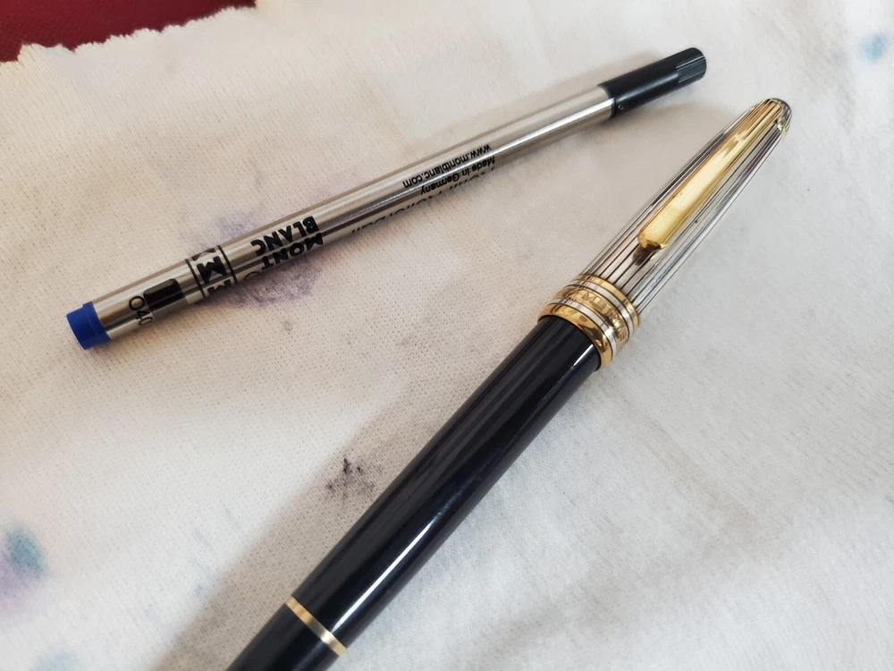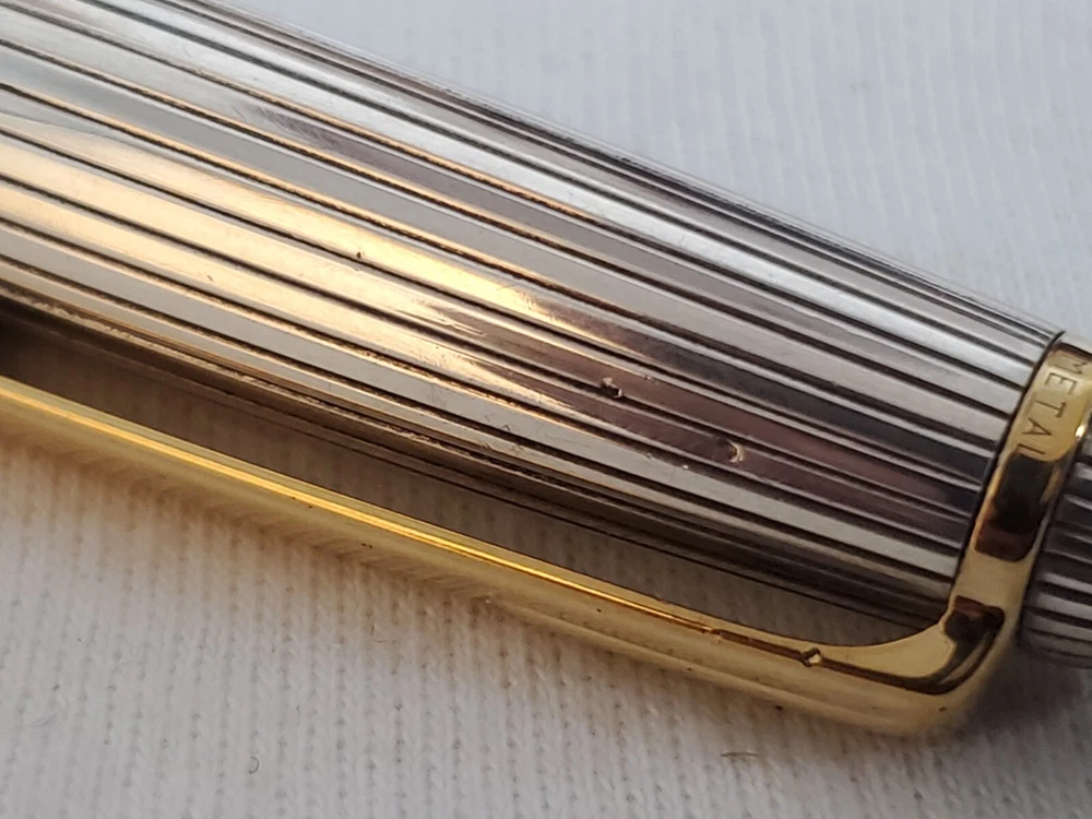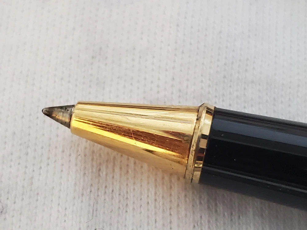 Pen is in very good condition. Small dings, scratches It comes with a refill.