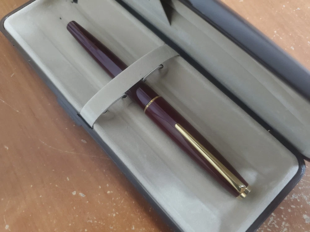 Pen is in good used condition. Small crack around nib, engraved two letter It's hard to see, check the photos. Piston filler works properly. It comes with a box.