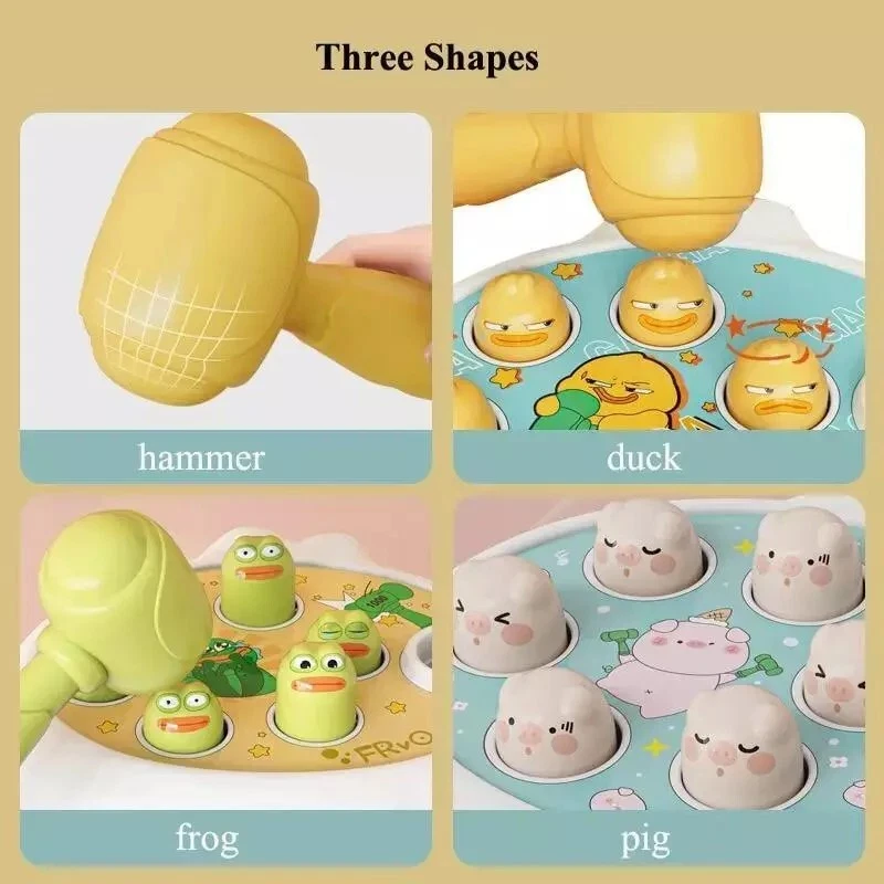 Montessori Baby Toy Educational Puzzle Learning Game with Mallet Duck Frog Pig