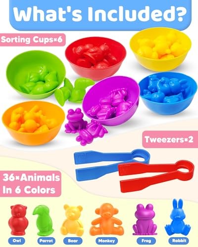 Return Policy Fast Delivery Trusted seller Counting Animals Montessori Toys for 3 4 5 Years Old Boys Girls, Preschool Learning Activities Educational Sensory Toys Gifts Easter Basket Stuffers for Kids Toddlers Ages 2-4, 3-5, 4-8 Product Description COUNTING ANIMAL TOYS: This preschool learning toy includes 36 multi-colored animals (monkey,frog,bear,bunny,parrot and owls), 6 rainbow color sorting bowls and 2 tweezers. The montessri toys are suitable for toddlers and kids aged 2-4, 3-5, 4-8 years old and help them learn early math. DEVELOP MATH SKILLS: The counting toys are ideal learning materials for learning animal type sorting and grouping, number counting and color matching make kids interested and confident in learning math. Nice teaching tool and helpful learning resource for teachers, parents to use at home, kindergarten and classroom. LEARNING THROUGH PLAY: While sorting the preschool toys, children need to sit and balance core muscles to move hands or use tweezers freely and figure out which color fits which bowl. This kind of activity can attract your kid's attention and interest, which can keep your kids engaged for hours. IDEAL GIFTS FOR TODDLERS : Are you still hesitated to choose birthday or Christmas gifts, stocking stuffers for 3 4 5 year old boys and girls? This montessori toys for toddlers 2-4, 3-5 years is definitely the amazing choice that you won't regret! SAFE AND WELL-MADE: Made with high quality, non-toxic and washable materail, this learning toys can last for years. The storage bucket provided is easy to collect store and carry after playing. Shipping Returns Payment Shipping Shipping is FREE to all addresses other than APO/PO boxes in the lower 48 states. All our stock ships from US-based warehouses. Shipped via USPS or UPS (depending on location and package weight) Unless stated otherwise, all orders will ship within 24-72 hours of your payment being processed. Check our feedback to see the great reviews of FAST shipping we offer. Returns Seller does not accept returns Payment We currently accept payment via eBay managed payments only. Once payment is cleared, we will dispatch your shipment within 1-3 business days. Please refer to the "Shipping" tab for more information regarding shipping speed to your destination.