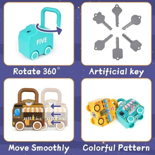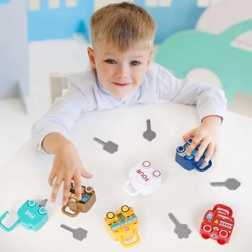 Montessori Learning Lock and Key Car Toys Sensory Matching & Sorting Early Nu...