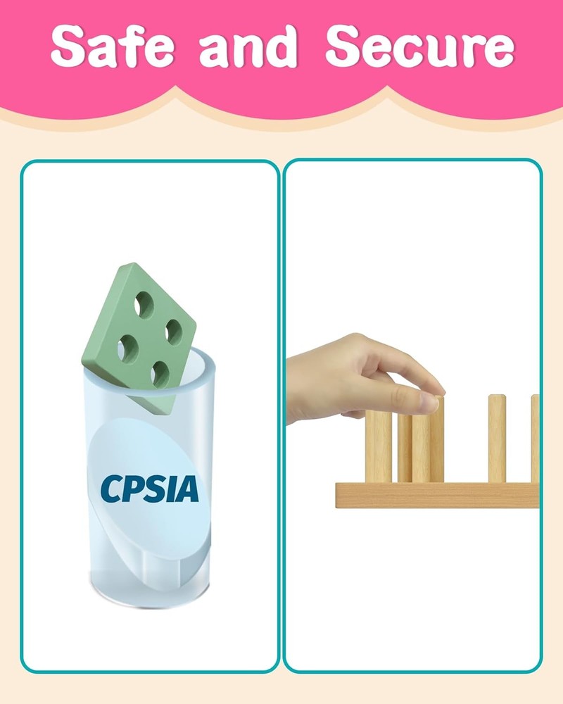 Montessori toys not only stimulate kids' creativity and imagination, but are also good for kid's brain development, helping to improve their cognitive abilities and problem-solving skills. The natural textures of our Montessori toys for 1–2-year-olds stimulate kid's senses and encourage them to feel, touch and explore the world around them. Toddler toys are also sturdier than plastic ones. They don't break, which means there are no broken little pieces, which is ideal for babies who, as we know, like to put everything in their mouths! Safety and High Quality: Toddler toys age 1-2 include high-quality, chunky wooden pieces to ensure tiny hands can easily grasp the pieces and complete the stacking puzzle. Montessori toys for 1 2 old are smooth, and the pegs are sturdy, blocks are covered with food safe paint that are non-toxic, odorless and anti-fade, it keeps your 1 2 years old boys and girls play safely. Kids will love the large, thick pieces of this toddler toy, which are easy to handle and put together. Montessori Toy for 1+ Year Old: Montessori Toy for 1 2 Year Old contains 20 pieces blocks, including 5 colors and 5 geometric shapes. It feeds the developing minds of young kids, helping them practice fine motor skills, hand-eye coordination, and problem-solving. Toddler toys also provides good opportunity for furthering verbal skills with colors, count, and shapes and inspiring imaginative adventures in young kids. Great Gifts for Boys&Girls: You can accompany your kids when he/she plays with sorting & stacking Toys, Bright and beautiful colors and rich geometry can attract your child's attention, and enhance his/her ability to recognize colors, stimulating the senses and boosting brain development. Montessori toys are excellent gifts for 1-2-year-old girls and boys. Design for Toddlers Age 1-2: Montessori toy for 1 2 year old is an easy game that involves mounting one piece on top of another piece. The geometric blocks have the same size but different colors and shapes. This kind of activity will help your toddlers to control their body movements which are in coordination with the stacking and sorting activity! The learning toy is perfect for your toddler to learn shape and geometry, build color recognition and exercise kids space conception. Away from /Pad Screen: Provides screen-free activity to develop kids creativity and protect eyesight.