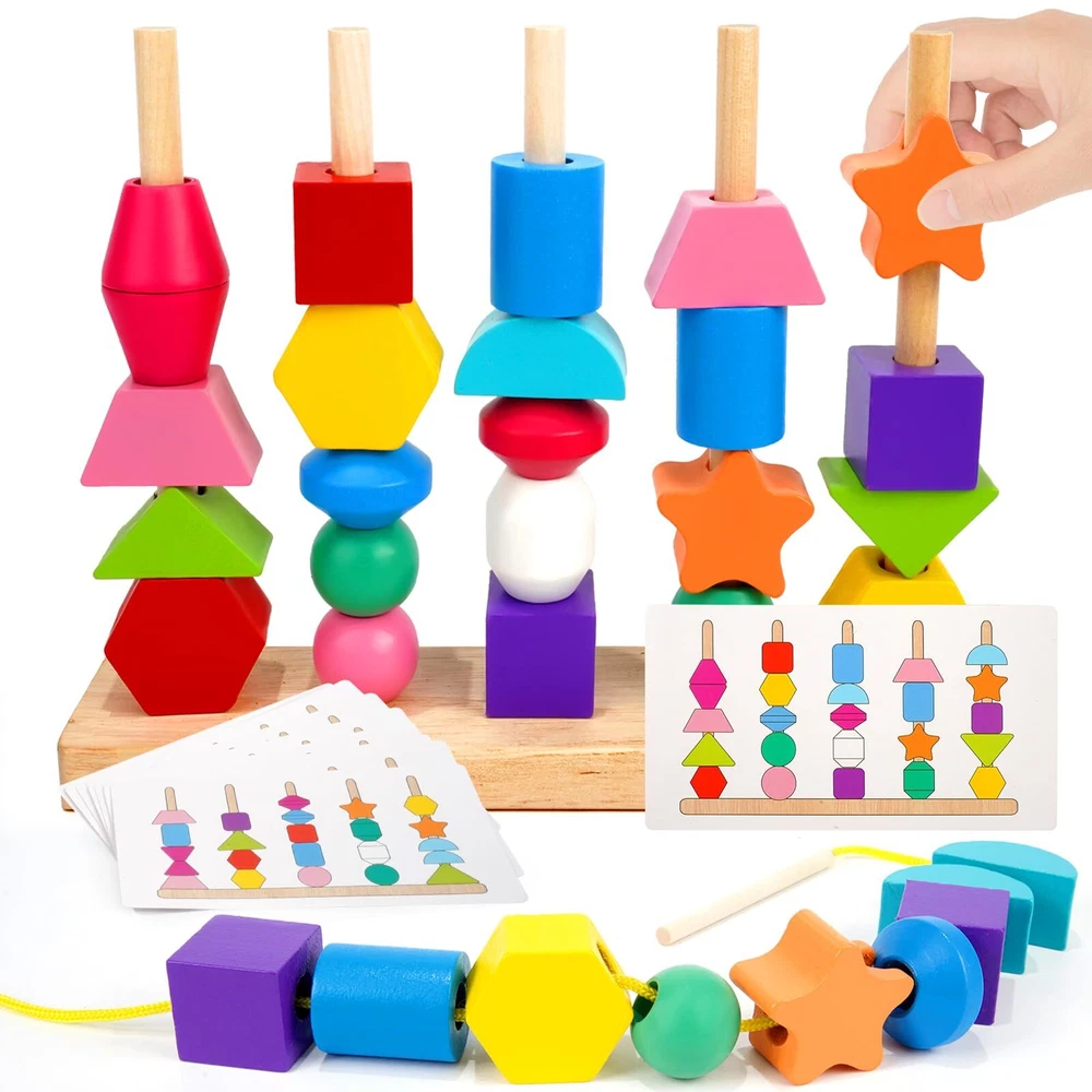 Montessori Toys for 2 3 4 Year Old Kid Boy Girl Toddler, Montessori Wooden Beads Sequencing Toy Set, Lacing Beads & Stacking Block & Matching Shape Stacker, STEM Preschool Learning Toy Birthday Gift Best Toddler Wooden Toys: Our toddler toy aged 2-4 contains 1 wooden stand, 25 colorful wooden beads, 2 shoelaces with wooden sticks, and 8 double-sided pattern cards with 16 sequencing. The sensory toys are made of quality solid wood with smooth edges, which can offer durable use and keep kids from being hurt. Water-based paint is used to cover the beads for kids to give a safe playing experience. The suitable size makes sure that toddlers aged 3 4 can grasp it easily. Montessori Wooden Toys for Toddlers: You can play this 2 year old sensory toy in various ways, including stacking blocks, lacing beads, building models, and matching shape stacker. It may improve kids’ fine motor skills, dexterity, and eye-hand coordination. Color sorting and shape matching can be enhanced during the play. It can also arouse babies’ creativity and imagination. Great educational Montessori toys for 2 3 4 year old to help kids develop many abilities and grow up better. Interesting Bead Sequencing Game: The game begins with choosing a card, and the task is to stack up the wooden blocks in the correct position of the wooden stand according to the bead sequence printed on lacing cards. During the game, kids will make judgments of different colors and shapes of the wooden beads, which can enhance their recognition of color and shape. There are 16 different arrays waiting to be challenged. A great game for toddlers aged 2-4 to spend all day with endless fun. Creative Bead Threading & Model Building Game: Our product comes with two 3-inch long threading strings, which are used to play the bead threading game. The wooden stick on top helps the child thread beads into string easily. Creating different arrays of the bead string can improve kids' fine motor skills. Also, they can build various models using these wooden blocks for toddlers, which may arouse their creativity and imagination. It is also a sorting toy and a stacking toy for toddler 1-3. Ideal Gift for Boys Girls: In safety, our wooden toy set is made of non-toxic material and quality paints. In beauty, the exquisite package and cute design of our product can meet your requirements. In function, it can exactly cover your educational need for preschool infants to develop all-round abilities. It is the best birthday gift for toddlers, and you can present kids 3-4 years old on any festival like Easter, Christmas, Thanksgiving, Children's Day, Halloween, Thanksgiving & New Year. Best Toddler Wooden Toys: Our toddler toy aged 2-4 contains 1 wooden stand, 25 colorful wooden beads, 2 shoelaces with wooden sticks, and 8 double-sided pattern cards with 16 sequencing. The sensory toys are made of quality solid wood with smooth edges, which can offer durable use and keep kids from being hurt. Water-based paint is used to cover the beads for kids to give a safe playing experience. The suitable size makes sure that toddlers aged 3 4 can grasp it easily. Montessori Wooden Toys for Toddlers: You can play this 2 year old sensory toy in various ways, including stacking blocks, lacing beads, building models, and matching shape stacker. It may improve kids’ fine motor skills, dexterity, and eye-hand coordination. Color sorting and shape matching can be enhanced during the play. It can also arouse babies’ creativity and imagination. Great educational Montessori toys for 2 3 4 year old to help kids develop many abilities and grow up better. Interesting Bead Sequencing Game: The game begins with choosing a card, and the task is to stack up the wooden blocks in the correct position of the wooden stand according to the bead sequence printed on lacing cards. During the game, kids will make judgments of different colors and shapes of the wooden beads, which can enhance their recognition of color and shape. There are 16 different arrays waiting to be challenged. A great game for toddlers aged 2-4 to spend all day with endless fun. Creative Bead Threading & Model Building Game: Our product comes with two 3-inch long threading strings, which are used to play the bead threading game. The wooden stick on top helps the child thread beads into string easily. Creating different arrays of the bead string can improve kids' fine motor skills. Also, they can build various models using these wooden blocks for toddlers, which may arouse their creativity and imagination. It is also a sorting toy and a stacking toy for toddler 1-3. Ideal Gift for Boys Girls: In safety, our wooden toy set is made of non-toxic material and quality paints. In beauty, the exquisite package and cute design of our product can meet your requirements. In function, it can exactly cover your educational need for preschool infants to develop all-round abilities. It is the best birthday gift for toddlers, and you can present kids 3-4 years old on any festival like Easter, Christmas, Thanksgiving, Children's Day, Halloween, Thanksgiving & New Year. Shipping from the USA All of our products are shipped from the USA, ensuring quick delivery to your destination. Payment We offer the following payment methods: PayPal, credit card, bank transfer, and eBay's secure payment system. Free Shipping & Free Returns Shipping within the USA is FREE. Additionally, any return is absolutely free for you. Risk-Free Purchase You have the option to return an item within 30 days without any justification. We cover the return shipping costs! Fast Shipping We ship immediately upon receipt of payment. Generally, the package is delivered within 2-3 days in the USA. If it takes longer, we will contact you. Quality and Costs Made in Europe, USA, China No customs fees or additional charges Total satisfaction guarantee Invoice with declared VAT available upon request in .pdf format Feedback Your feedback is very important to us. After you pay for your
