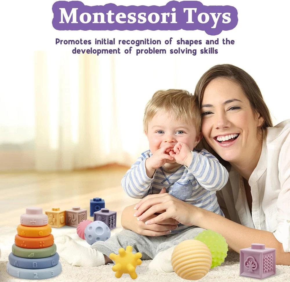 Store New Arrivals Add to Favorite View Feedback Contact Montessori Toys for Babies,Soft Stacking Building Blocks Rings Balls Sets,3 in 1 Baby Toys Bundle,Sensory Toys for 6-12 Months, Soft Teething Toys for Babies,Baby Toys Gifts for Boy Girl Description Item model number BT0076 Style 3 IN 1 Set-2 Product Dimensions 12.6 x 3.78 x 9.84 inches Item Weight 2 pounds Manufacturer recommended age 6 months and up Department Unisex Baby Manufacturer IFLOVE BABY SAFETY PRIORITY - Our Montessori toys for babie 6-12 months are made of high-quality food-grade materials, highly durable food-grade silicone, being 100% BPA-free, safe, non-toxic,and the excellent quality of the products is passed the certification,suitable for baby WHAT’S INCLUDED - Our 24 pieces of baby and infant toys includes 12 different colored blocks,6 soft stacking rings and 6 squishy and sensory toy balls,perfect 3 in 1 baby toys bring countless hours of fun EARLY LEARNING TOYS - Our baby toys come in different colors, animals, numbers ,fruits,and shapes, which are helpful for children's balance, fine motor skills, hand-eye coordination and problem-solving ability. They are good tools to help children learn SOFT TEETHING TOYS - Our baby toy is very soft,multiple textures with the comfortable feeling enhances the baby's sensory stimulation and help the development of baby’s matching skills,it will be a great gift for baby THE BEST CHOICE FOR YOUR BABY - Those learning toys can help your baby boy or baby girl naturally develop their problem-solving abilities and cognitive skills,this is a perfect choice for your baby Product Description ABOUT US We offer the best prices around on high quality products. Our E-store includes media such as books, movies, music and games while offering electronics, toys, sporting apparel, clothing, tools, general home, garden items and more. SHIPPING We are always working hard to ensure your package arrives as soon as possible. Please understand that some factors like weather, high postal traffic, and the performance of shipping companies are outside of our control. We offer free shipping to the lower 48 states and ship within 2 business days of payment, usually sooner. We do not accept P.O. Boxes. Please provide a physical address. RETURNS We offer a 30-Day Return Policy on items which you are not completely satisfied with. You have the option for a full-refund or an exchange of the item. No returns are available on items shipped outside of the USA. PAYMENT We accept PayPal. CONTACT US This page content is yet to come Please ad us to your favorite seller and visit again later Thank You CUSTOMER SATISFACTION We try our very best to make sure every customer is completely satisfied. If there's a problem, message us! We're happy to help.