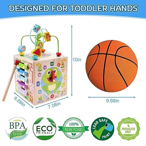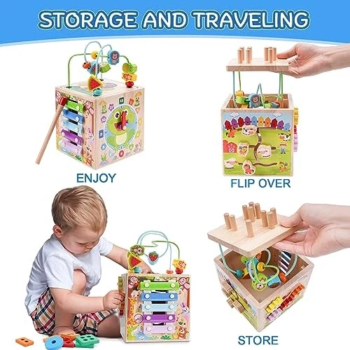 Montessori Wooden Activity Cube for 1 2 3 Year Old Toddlers | 1st Birthday Gift