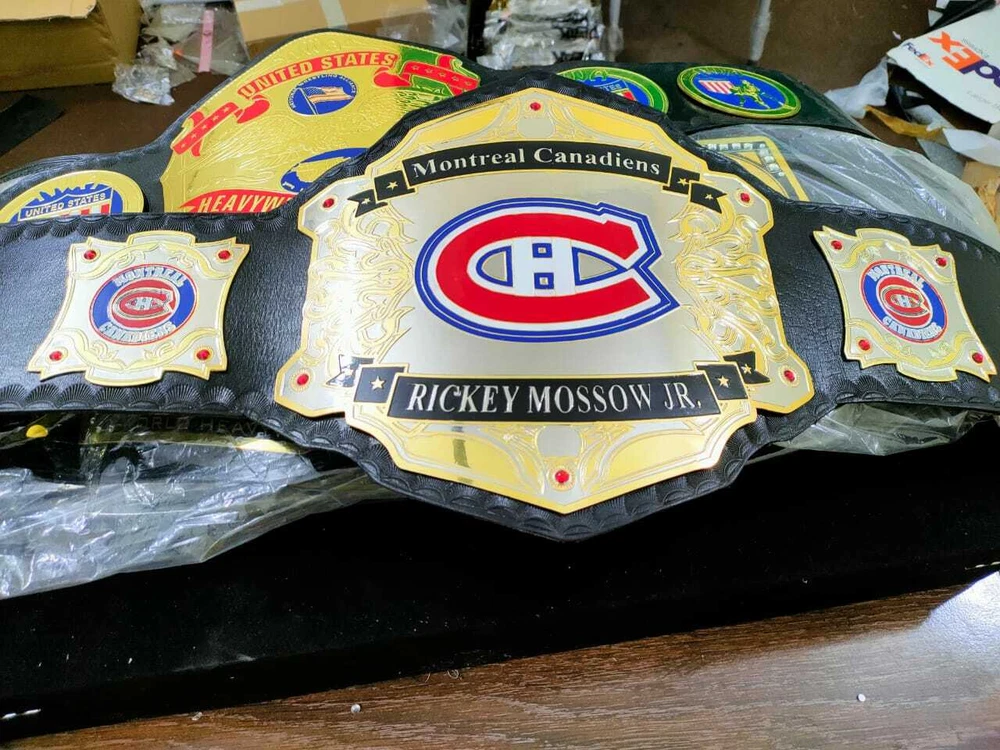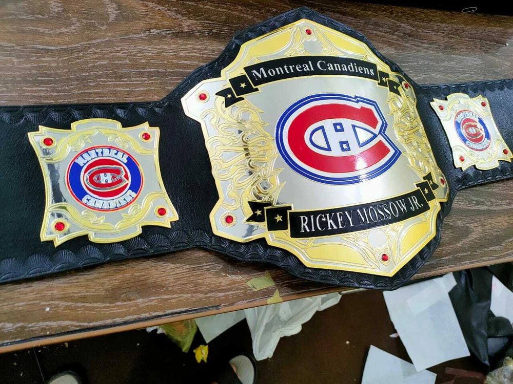 Welcome to our shop ------------------------------------------- We are specialist in manufacturing handmade products:: Our wide range of products include: >>>>Championship Belts WWE | WWF | AEW | UFC | WBC | WCW Product Description ** Montreal Canadiens Championship Replica Adult Size Ice Hockey Wrestling NHL Fan Belt *** Plate Metal: Brass (Zinc available on request with additional cost) Strap: 100% Leather Largest Waist Size: Fits upto 46'' Belt Length: ~50" Weight: 6.17 lbs | 2.81 Kg Plate Thickness: 2mm (4mm Version available on demand with additional cost) ::The belt is well crafted and manufactured to meet the quality demands of fans:: Get your hands on this marvelous piece now! Note: If you need further details kindly inbox us, we will try to be as responsive as possible. ------------------------------------------- Return Policy: Generally we don't have much complains on our products and we make sure to 100% satisfy our clients. We send the product in well Bubble Wrapped packaging so there is highly unlike chance of getting damaged item. In case there is a damage, we will try to give partial refund or you can ask for full refund within 30 days after returning the belt to origin. NOTE: 1. If you have placed the order by mistake or you have purchased a wrong item then we are not going to refund that. 2. Buyer will pay the shipping fee of returning the belt. ------------------------------------------- Happy Shopping! :)