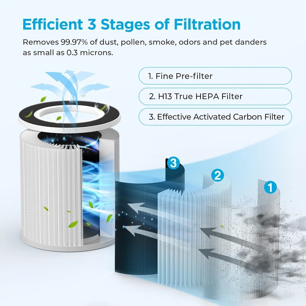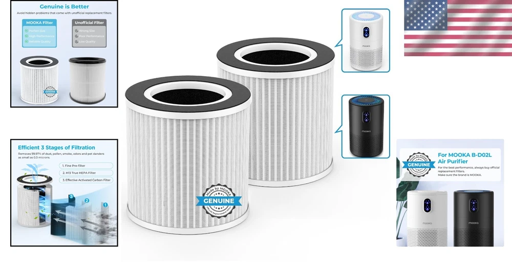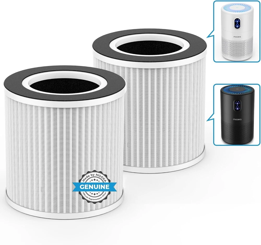 Mooka B-D02L Air Purifier Replacement Filters - 2-Pack, H13 HEPA & Carbon Layers