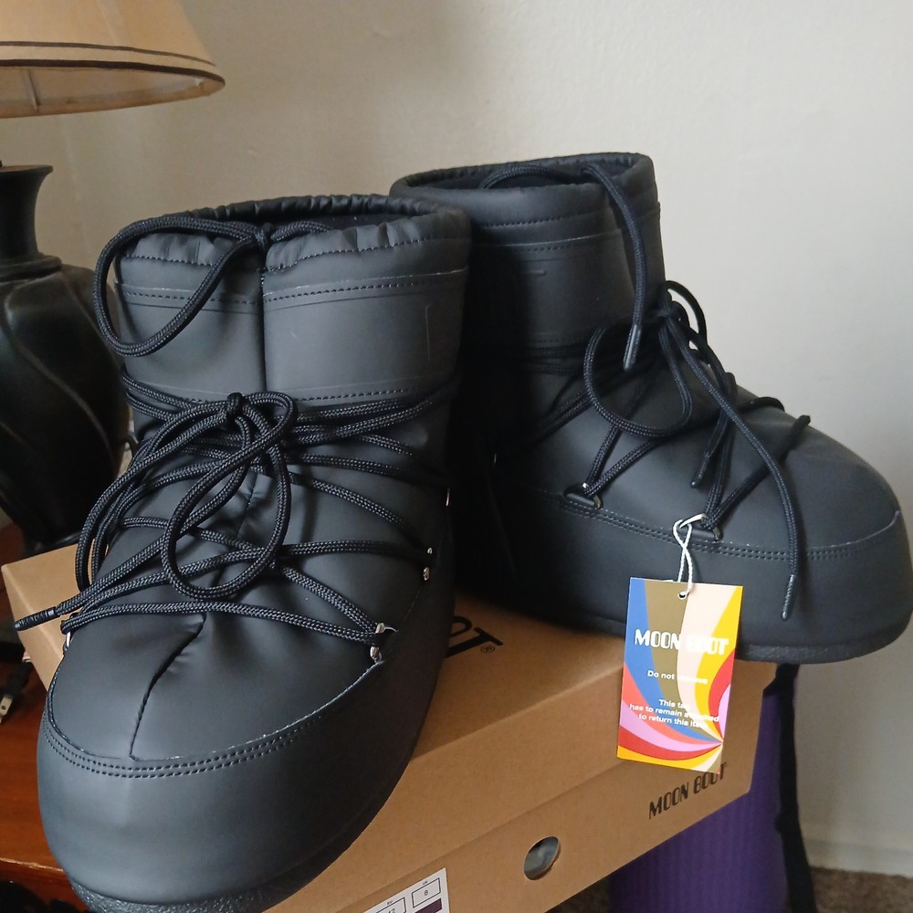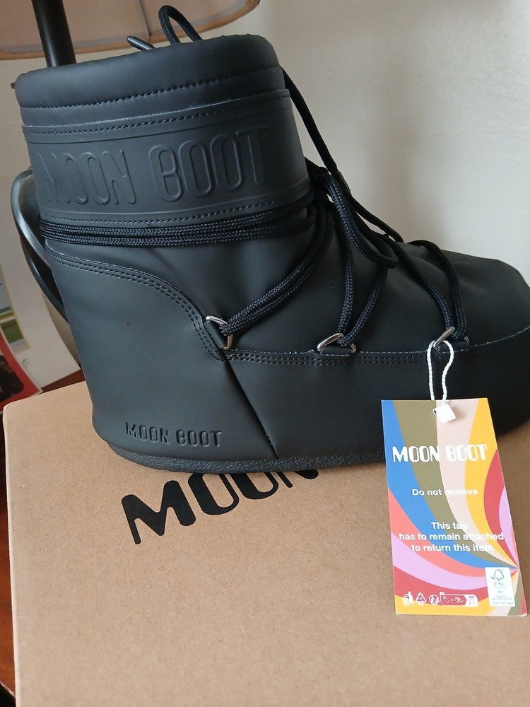 MPN: NOT SPECIFIED Personalize: No Style Code: NOT SPECIFIED Color: Black Heel Height: Low (1-1.9 in) Toe Shape: Round Toe Customized: No EU Shoe Size: 41 Features: Waterproof Brand: Moon Boot Style: Snow Boot Upper Material: Polyester Type: Boot Department: Women Accents: Lace, Logo Occasion: Casual Season: Winter US Shoe Size: 10 Vintage: No Closure: Pull On