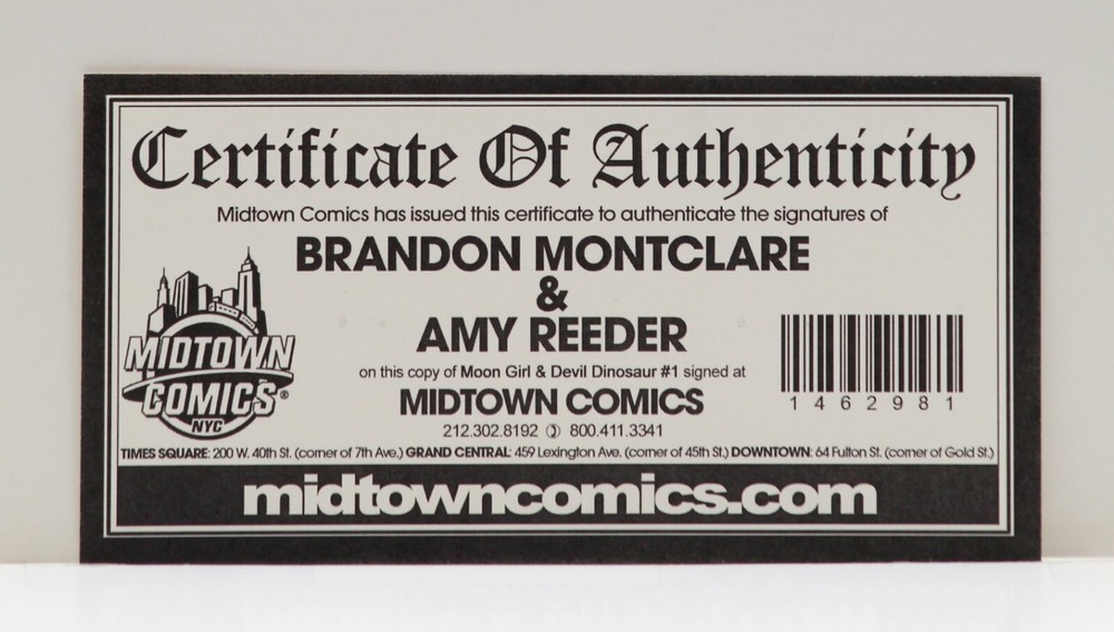 Link to our BEST items!! Link to our ENDING items!! Link to our FAQ page !! Link to our NEWEST items!! Item: Moon Girl & Devil Dinosaur (2016) #1 Signed Amy Reeder Brandon Montclare COA NM Special Notes: This issue is a First Printing! This issue is a limited edition and it comes with a COA!! The COA has been provided by Midtown Comics!! We do not use stock photos! What you see in the pictures is what you will be getting. Publication Date: Jan 2016 (The date in the title refers to the year the title started) Condition: Near Mint (9.4) white pages The comic book will be shipped bagged and boarded for protection. SHIPPING: All pricing is based on the weight of the package and your location. Package Weight: 1 lb[s] Package Size: 12x9x1 We charge exact shipping costs per USPS with NO handling charge. You can check our shipping quotes on the USPS website. For the convenience of the winner, we offer shipment via Priority Mail or Media Mail, when shipping to an address inside the USA. For International Winners, we offer Priority Mail International or First-Class International Mail. Please click on the "SHIPMENTS and PAYMENTS" tab above for more details. * FREE Insurance, for items totaling under $100.00, is only available when shipping with USPS Priority to an address within in the USA! All packages will have a tracking number sent to the winner! Shipping & Payment Terms: If you would like to have your item insured, please contact us and we will send you an invoice with the adjusted shipping charges. We will be happy to combine the shipping charge for multiple auction wins . If you win a single item, you do not have to wait for an invoice to make your payment. IF YOU WIN MULTIPLE AUCTIONS, PLEASE WAIT UNTIL WE SEND YOU A COMBINED INVOICE BEFORE PAYING FOR YOUR ITEMS. Please DO NOT pay for items separately. We will ship your items within 2 business days upon receiving your payment. Payment Options: PayPal is the preferred method of payment per eBay's policies. If you do not have a PayPal account, we do accept credit card payments over the phone. Payment MUST be received within 7 business days of the auction ending or your bid will be cancelled and eBay will be contacted. Questions: We will be happy to answer any questions you have about our items before the auction ends. Please ask your questions as early as possible so we have plenty of time to answer them. Return Policy: All returns MUST be approved by Duncanville Bookstore. If there is a problem with your order, please give us a chance to address the issue before you leave negative feedback and/or contact PayPal for a refund. Store Info: Please check our other auctions and our eBay store for more great deals!! Check out our info page for more great ways to get in touch with us. Also, feel free to contact us if you are looking for anything in particular or you are looking to sell your items. We are always buying!! Duncanville Bookstore is open 7 Days a Week 10am-7pm CST!!
