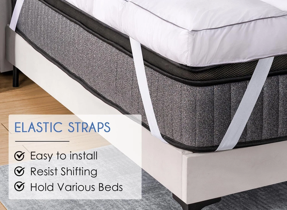Soft Pillow Top: Indulge in the luxurious softness of our pillow top mattress topper. The soft and fluffy fill adds a cloud-like comfort to your bed, transforming even the firmest mattress into a plush haven. Experience a truly restful sleep with the extra layer of coziness our topper provides. Pressure-Relieving : Filled with high-density down alternative, our mattress topper is designed to relieve body pressure and provide exceptional support. Enjoy the benefits of a restful sleep as the topper conforms to your body, alleviating pressure points in areas such as shoulders, back, and hips. Invest in your well-being with our pressure-relieving mattress topper. Affordable Enhancement: Upgrade your sleeping experience without breaking the bank. Our mattress topper offers an affordable and easy solution to revitalize a hardened mattress. Instead of investing in an entirely new mattress, enjoy the cost-effective and luxury of our topper for an instant improvement in comfort. All-Season Breathability: Enjoy optimal comfort throughout the year with our mattress topper's excellent breathability. Crafted with materials that promote air circulation, it keeps you cool in the summer and cozy in the winter. Enjoy restful sleep in any season without overheating, making it the perfect addition to your bedding. Customer Satisfaction:Please leave it for 48 hours first or tumble dry on low heat for 15 mins. Just feel free to us if have product quality issue, we will make every effort to solve your problem!