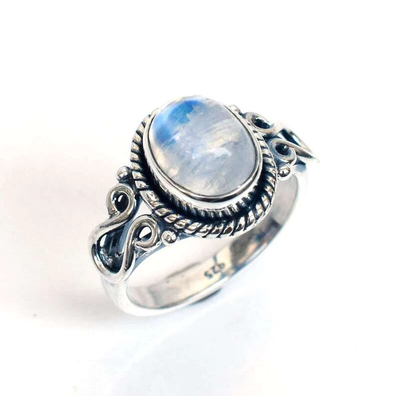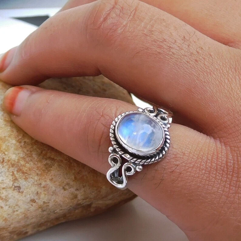 Seller Notes: “All Usa Sizes Available” Material: silver Sizable: Yes Metal Purity: 925 Occasion: Anniversary, Birthday, Christmas, Engagement, Father's Day, Graduation, Mother's Day, Valentine's Day, Wedding Brand: Sterling Setting Style: Bezel Main Stone: Moonstone Type: Ring Main Stone Shape: Oval Color: White Main Stone Color: White Vintage: Yes Ring Size: Handmade Main Stone Creation: Natural Base Metal: Silver Theme: Bohemian Country of Origin: India Metal: Sterling Silver Signed: Yes Style: Band Wholesale: Yes Shape: Oval Country/Region of Manufacture: India Personalize: Yes Handmade: Yes Antique: Yes Seller Warranty: Yes Features: Stackable Secondary Stone: Moonstone