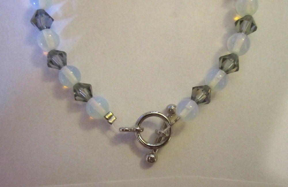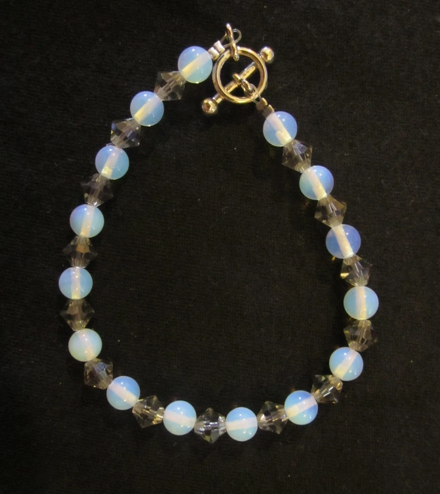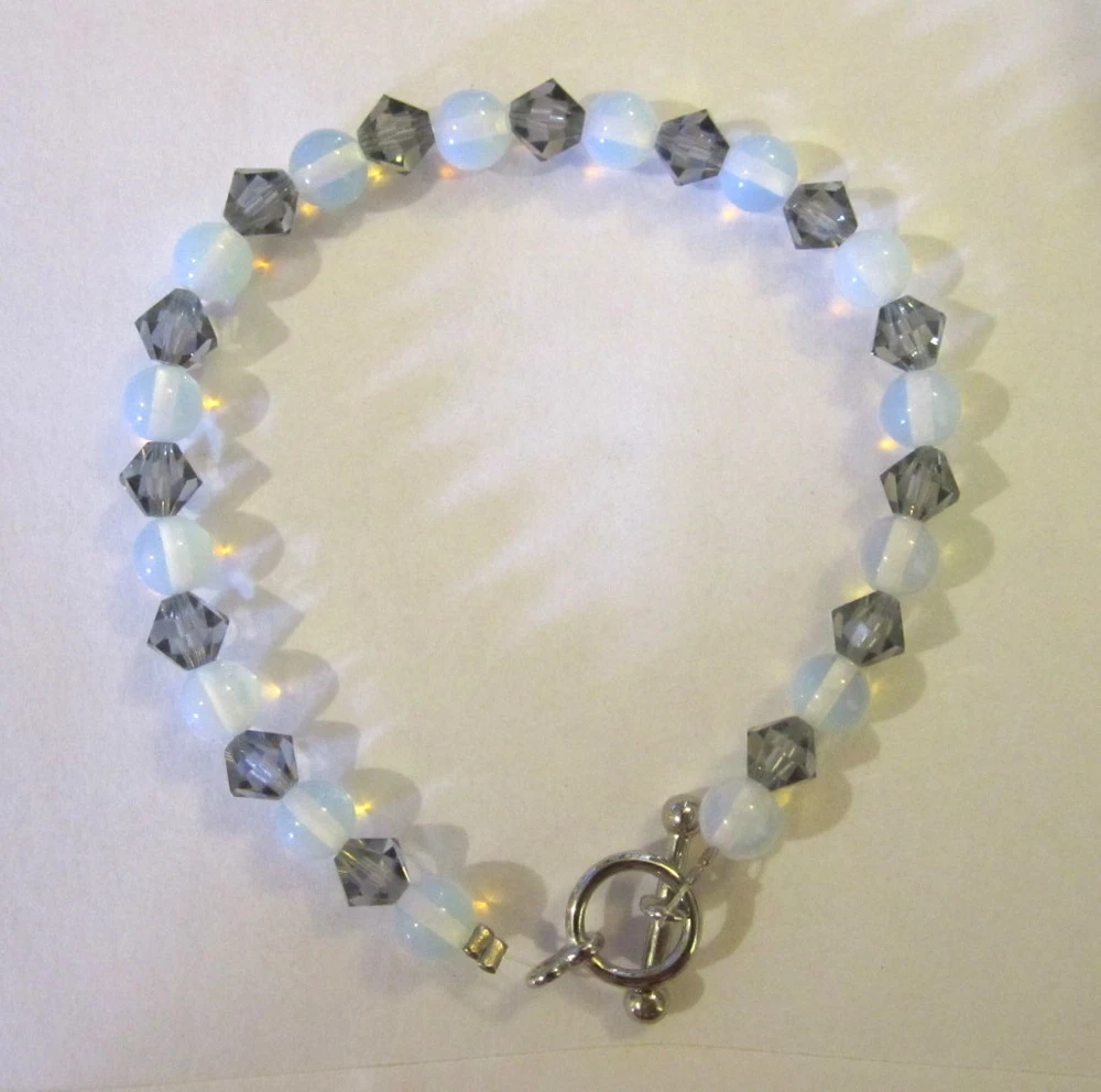 DETAILS This listing is for a gorgeous high quality handmade genuine Swarovski crystal element and Moonstone silver toggle clasp bracelet. This is a true beauty and of very high quality!! The bracelet is made with 6mm black diamond Swarovski crystal elements and 6mm Moonstone gemstone beads. This item is NOT Swarovski brand. The bracelet measures approx. 7.5 inches in length and features a silver toggle clasp. Everyone will think you paid a fortune for this beauty and you will get tons of compliments!!!! It would also make a great gift IF you can part with it!! FEEDBACK POLICY DUE TO A LARGE NUMBER OF BUYERS THAT NEVER RETURN FEEDBACK...I WILL ONLY GIVE IT AFTER THE BUYER DOES. WHEN THE BUYER RECEIVES THEIR ITEM AND LEAVES ME POSITIVE FEEDBACK, I PROMISE TO RETURN THE FEEDBACK TO THEM. SOMETIMES IT TAKES ME A FEW DAYS BUT I WILL GET IT TO YOU!! IF THE BUYER IS NOT HAPPY WITH SOMETHING I ASK THEM TO PLEASE CONTACT ME BEFORE LEAVING FEEDBACK AND GIVE ME THE FAIR CHANCE TO MAKE THINGS RIGHT!! I HOPE THAT MY BUYERS WILL UNDERSTAND AND I THANK YOU!! QUESTIONS Ask any question that you may have. If you are not happy with this item when you receive it.... please contact us instead of leaving a negative feedback. We are always willing to work anything out. Our customers come first and we want them to be happy. We always promise excellent customer service. A happy customer comes back!! We stand 100% behind our products and 100% guarantee all of them!! PAYMENT DETAILS USA and OUTSIDE USA: We accept PAYPAL payments. We do combine shipping on multiple items IF all items are paid within one payment. PLEASE WAIT FOR COMBINED SHIPPING INVOICE!! If you cannot pay with Paypal immediate, please let us know right away. This will keep us from bothering you with tons of invoices because we will know when to expect your payment!! Items MUST be paid for within 4 days. If not, We will relist the item and file a Non-Paying Bidder complaint. We truly hope that all transactions can be smooth and pleasant!! PLEASE understand that shipping is more than just stamps or postage. We do combine shipping on multiple items IF all items are paid within one payment. PLEASE WAIT FOR COMBINED SHIPPING INVOICE!! I try and ship items out within 24-48 hours after payment is received. I am very careful to package items extremely well which requires alot of high quality packing materials. Please also understand that no matter how fast I ship...the postal service is out of our control. Thank you! FOR RETURNS If you feel that you are not happy with an item, please CONTACT ME before leaving feedback. If the item is broken...I require return and will refund your payment in full when the item gets back to me. If you just dont want the item and choose a REFUND please understand that I cannot issue it until I have the item back in my home and it is in the EXACT shape as when it left. You will need to return the item at your own expense and refunds do not include shipping unless the item is broken or not as described. This is the only way that I can recover some of my costs that I would otherwise lose. THANK YOU!!