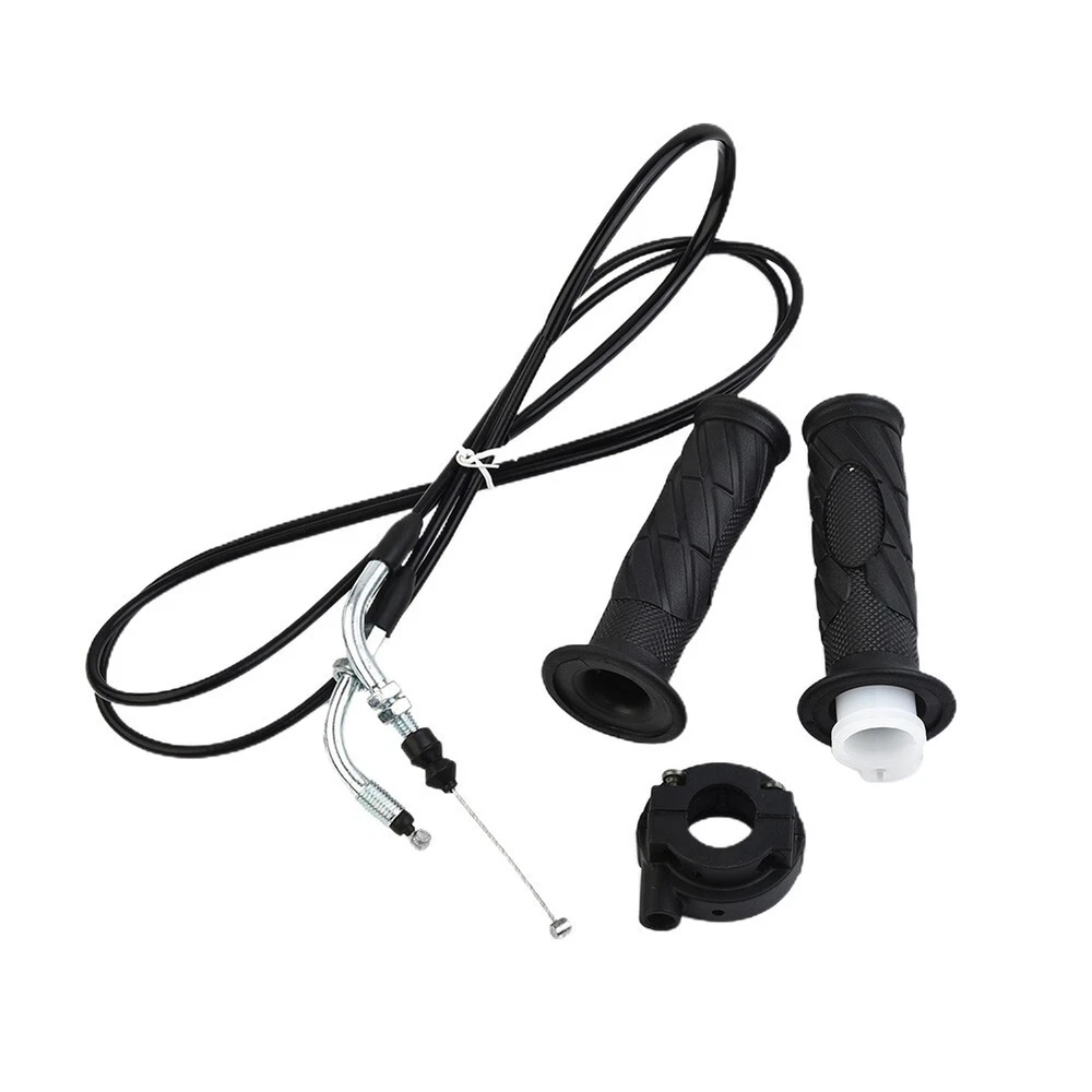 Product Description Details: * This is a set of left and right handle bar grips for motorcycle. * fits for most for Gy6 125-150cc Scooters Mopeds * Material: rubber& plastic& metal * Left handle length: 122.3mm, Inner diameter: 23mm * Right throttle handle length: 133.2mm, Inner diameter: 23mm * Color: Black(as pictures show) Package contents: A pair of hand grips 1* throttle cable Note: The real color of the item may be slightly different from the pictures shown on website caused by many factors such as brightness of your monitor and light brightness Payment We accept payment via Paypal only. Payment must be made within 5 days, Non-payment may result in an UPI (Unpaid Item), eBay will automatically close your account if you accumulate 4 UPI's total. Import cutoms duties or taxes which are not included in item price, if any, are on buyer's responsibility. You can check with your local customs office for further information prior to bidding/buying. Delivery details We only ship to confirmed Paypal addresses. Please comfirm that your paypal address is in line with your shipping address. Please kindly note that the c ombined shipping is not provided because the shipping fee is calculated by weight. Also, the each additional item means exactly the the same color and size. It takes about 7 -15 working days to US; about 10-30 working days to other countries. Transit time may be a little delayed because of the bad weather and customs inspection . If you do not receive your item within 30 working days since payment finished, please contact us immediately for further assistance. Contact us We strive for 100% customer satisfaction! Positive Feedback is very important to us. If you have any questions, p lease feel free to contact us via "Ask seller a question" . We will reply your email within 24 working hours.