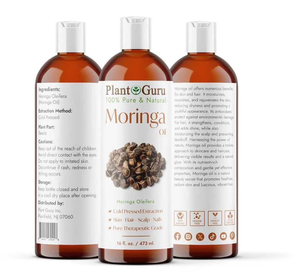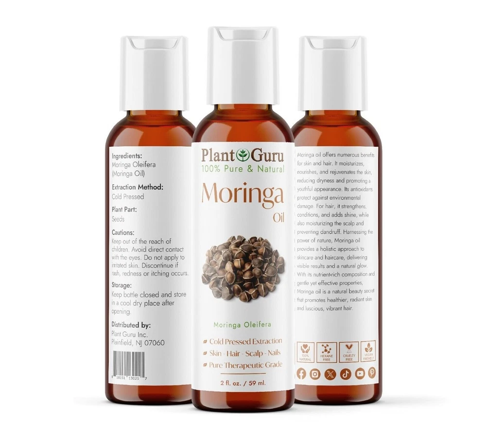 Moringa Seed Oil 100% Pure Natural Cold Pressed / Refined !! Free Shipping !! Name: Moringa Oil Ingredients: Moringa Oleifera "Moringa Oil" Extraction Method: Cold Pressed Plant Part: Seeds Moringa oil offers numerous benefits for skin and hair. It moisturizes, nourishes, and rejuvenates the skin, reducing dryness and promoting a youthful appearance. Its antioxidants protect against environmental damage. For hair, it strengthens, conditions, and adds shine, while also moisturizing the scalp and preventing dandruff. Harnessing the power of nature, Moringa oil provides a holistic approach to skincare and haircare, delivering visible results and a natural glow. With its nutrient-rich composition and gentle yet effective properties, Moringa oil is a natural beauty secret that promotes healthier, radiant skin and luscious, vibrant hair. Click on Link Below to view our full Butters and Oils list LINK >>> 100% Pure Butters LINK >>> African Black Soap LINK >>> Carrier Oils / Pure Plant Oils LINK >>> 100% Pure Essential Oils, Therapeutic Grade. LINK >>> Pure Essential Oil Blends Why Plant Guru ? We source the finest quality ingredients and supplies from ethical producers worldwide. We supply all of our products at market leading prices with no gimmicks. We never sacrifice quality for price. The customer is always right and should always be treated the way our customer service reps would like to be treated. Appreciate every customer, large and small and do your best to service them. About Plant Guru Our business was born online offering quality essential oils at a fair price. No advertising, No marketing plan, No multi pyramid pricing. This allows us to pass on a huge savings to our customers. We provide quality essential oils at the most affordable prices. From our experience if you stick to your principles, the business will take care of itself. These beliefs have allowed us to do great things. Our Mission Plant Guru is a small family ran business with a passion for essentials. "Our business revolves round this passion" As essential oil users in our personal life, We were tired of the multi marketing companies. The prices for a small 15ml. bottle were getting is ridiculous. Everyone should be able to experience the healing power of essential oils. Shipping We ship within one business days of payment, usually sooner. *Standard Shipping takes between 3-5 business days. * We use a selection of shipping services such as UPS, FedEx, USPS etc. *Expedited shipping takes between 2-3 business days. *PLEASE PROVIDE A PHYSICAL ADDRESS. Feedback * Positive feedback is provided on every transaction you make with us and we ask that you do the same. * Once we have been notified that you have received your item and are happy with it, we will post you a feedback. * If for any reason, if you decide to leave a neutral or negative feedback, please contact us first and let us mutually resolve it. It is impossible to address issues if we do not know about them! * We care for your satisfaction and will make sure that you are happy with the transaction to post us your FIVE STAR ratings in all areas.