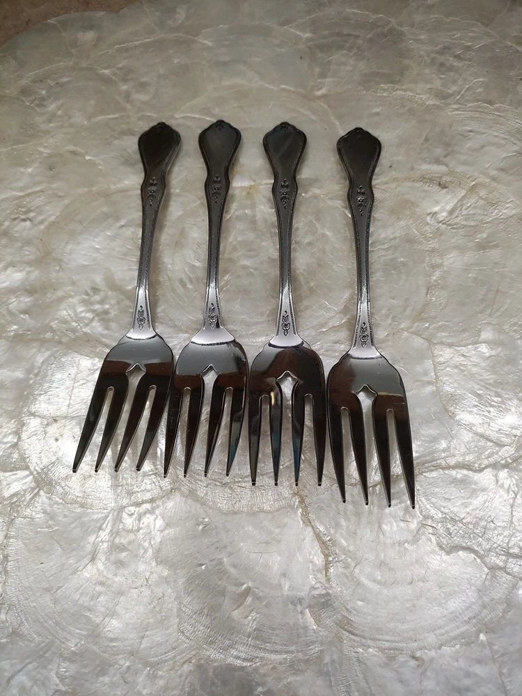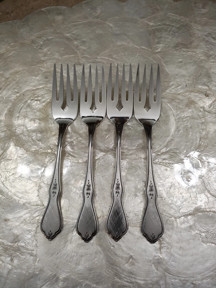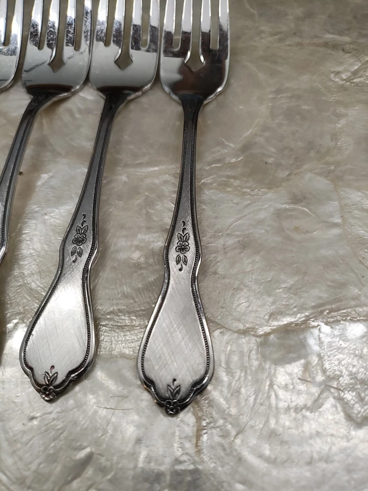 This product is a set of 3 Morning Blossom dinner forks by ONEIDA. The forks are made of stainless steel with a modern floral handle pattern. They are silver in color and suitable for adults. These flatware pieces are stylish and durable, perfect for everyday use or special occasions. K Slvrwr5