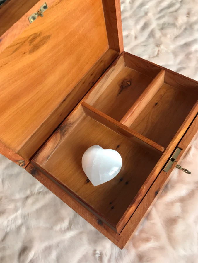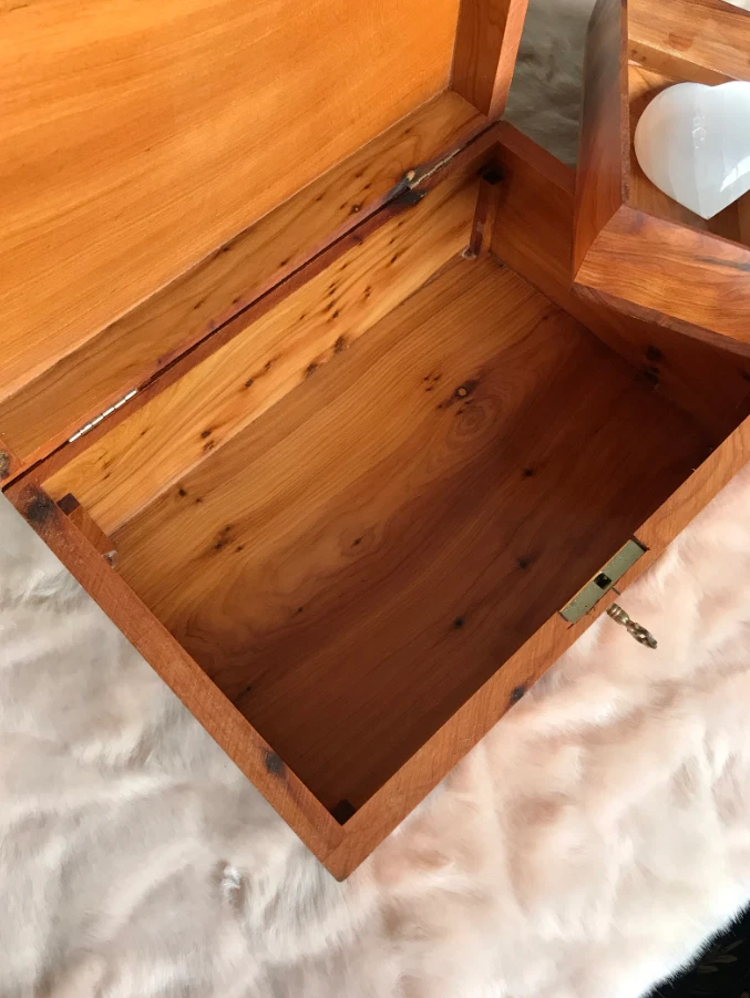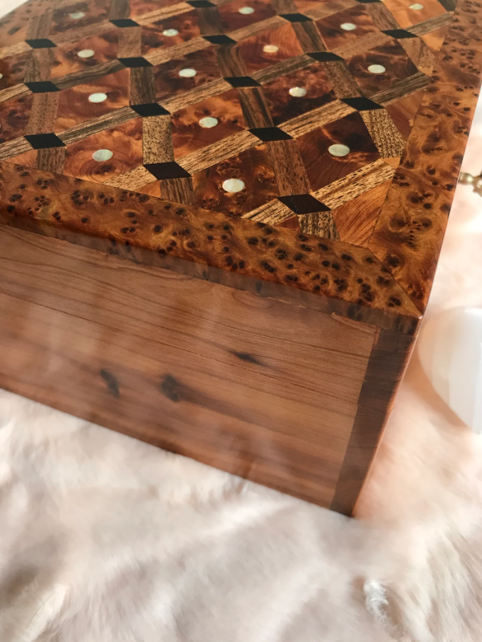 AtlasMuse Handmade Thuya Wooden Box β Crafted with Love by Moroccan Artisans AtlasMuse proudly presents its exquisite Thuya wooden box, meticulously handcrafted by skilled Moroccan artisans. Ideal for storing jewelry, cherished belongings, and important documents, this box combines functionality with timeless elegance. π‘ Quality Assured: Each box is crafted using the finest Thuya root burl wood, with careful moisture management to prevent deformation over time. β¨ Key Features: Three separated compartments inside, with spacious storage underneath (Two Storage Levels). Secure lockable design with a brass key. Customization available: engrave/print text on the lid, leather, or velvet interior lining. π Dimensions: Length: 20 cm / 7.9 inches Width: 13.5 cm / 5.3 inches Height: 8 cm / 3.1 inches π Shipping Details: Your order will be shipped within 1 day of purchase, with express shipping delivering in 3-5 business days. Experience the elegance and craftsmanship of AtlasMuse !