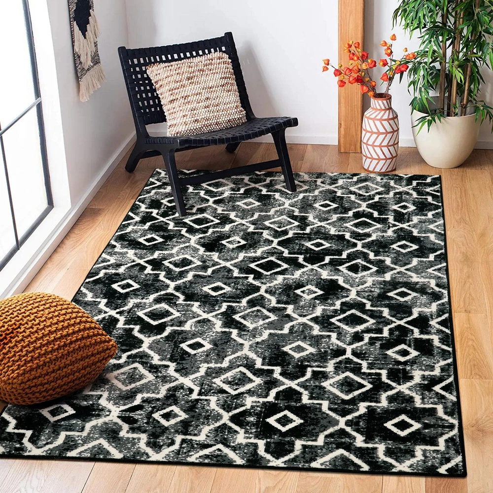 【Moroccan Trendy】-- Transform your home with our stunning faux wool rug, adding a touch of captivating Moroccan style. The distressed style combined with modern accents effortlessly enhances the aesthetics of any room, infusing it with a sense of cozy comfort 【Ultra Soft Material】-- Our faux wool rug has a homey, natural feel underfoot that is incredibly soft and silky, you'll feel like you could lie back and cloud-watch from your living room,there's no better way to warm your feet. Expertly crafted from synthetic fibers,this rug has a virtually non-shedding pile that ensures long-lasting use 【Machine Washable】-- Our moroccan rug is washable for easy care.Just toss in the machine with washing in cold water and dry on low heat.For minor stains,simply vacuum with a handheld vacuum or shake off outdoors.Regular maintenance keeps carpet shiny and spotless. 【Kid & Pet Friendly】-- A modern rug that can withstand those little accidents, pet odors and spills. Polyster washable rug is designed to stand up to the elements, it'll be easier to wash off the dirt. Let your sweet baby and friends play together on this soft rug 【Low-Pile & Non-Slip Rug】-- The non-slip rubber backing provides a good grip to make the mat stay put. Sleek and functional 0.2" pile height allows for convenient placement in entryways, underneath furniture and will not obstruct doorways