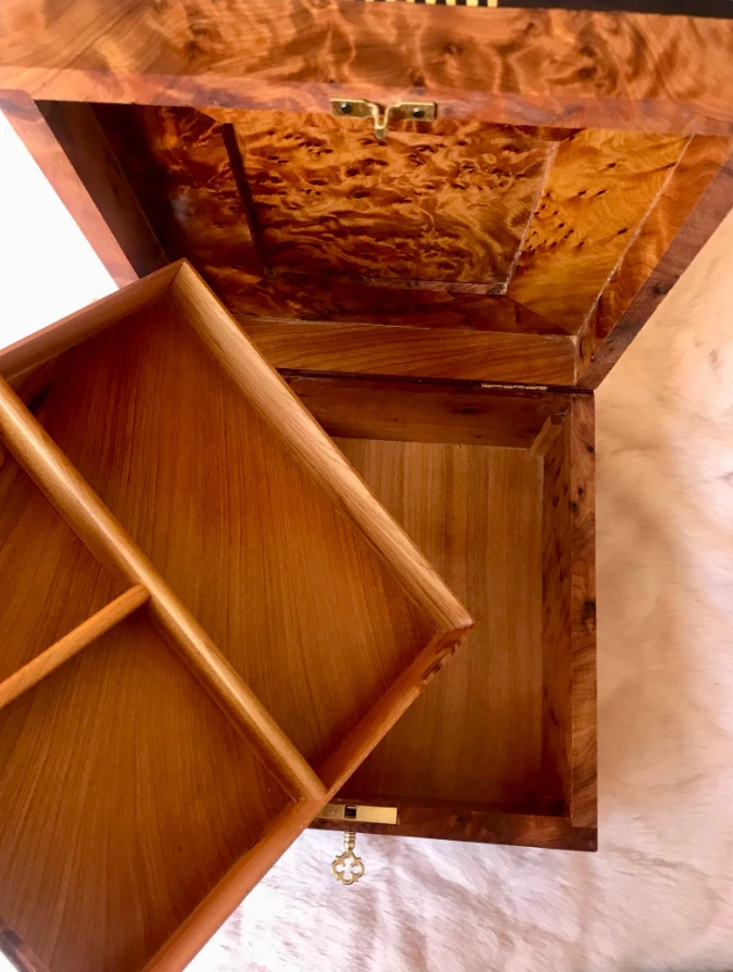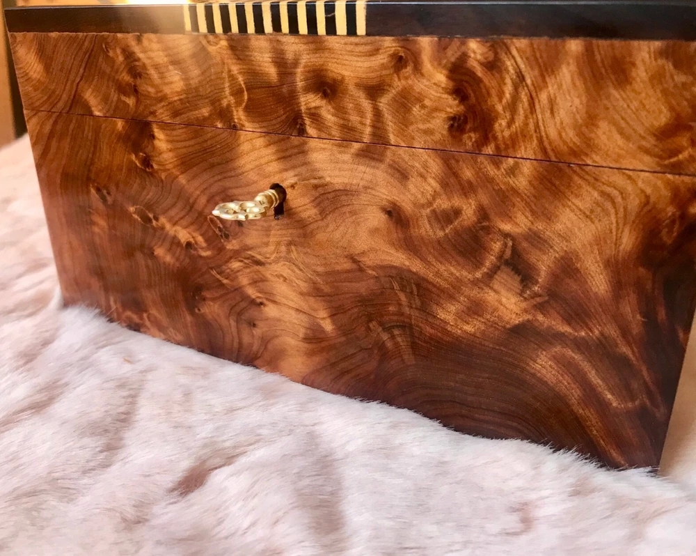Moroccan Lockable Thuya Wood Burl Jewelry Box Organizer Keepsake
