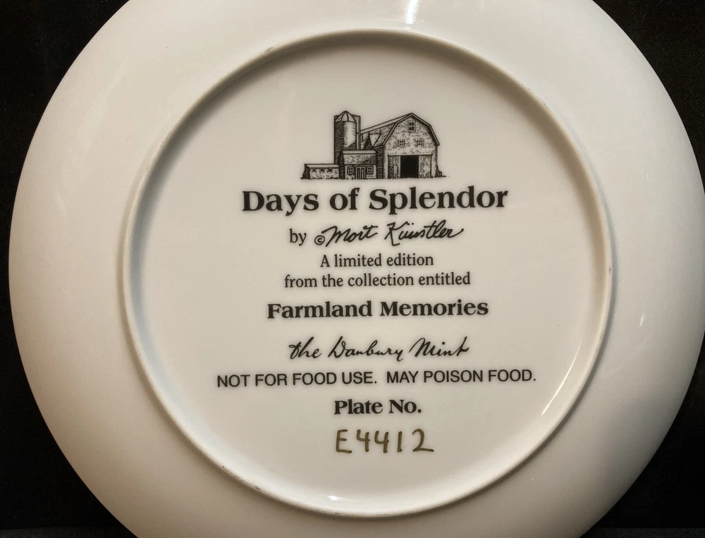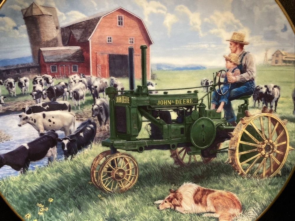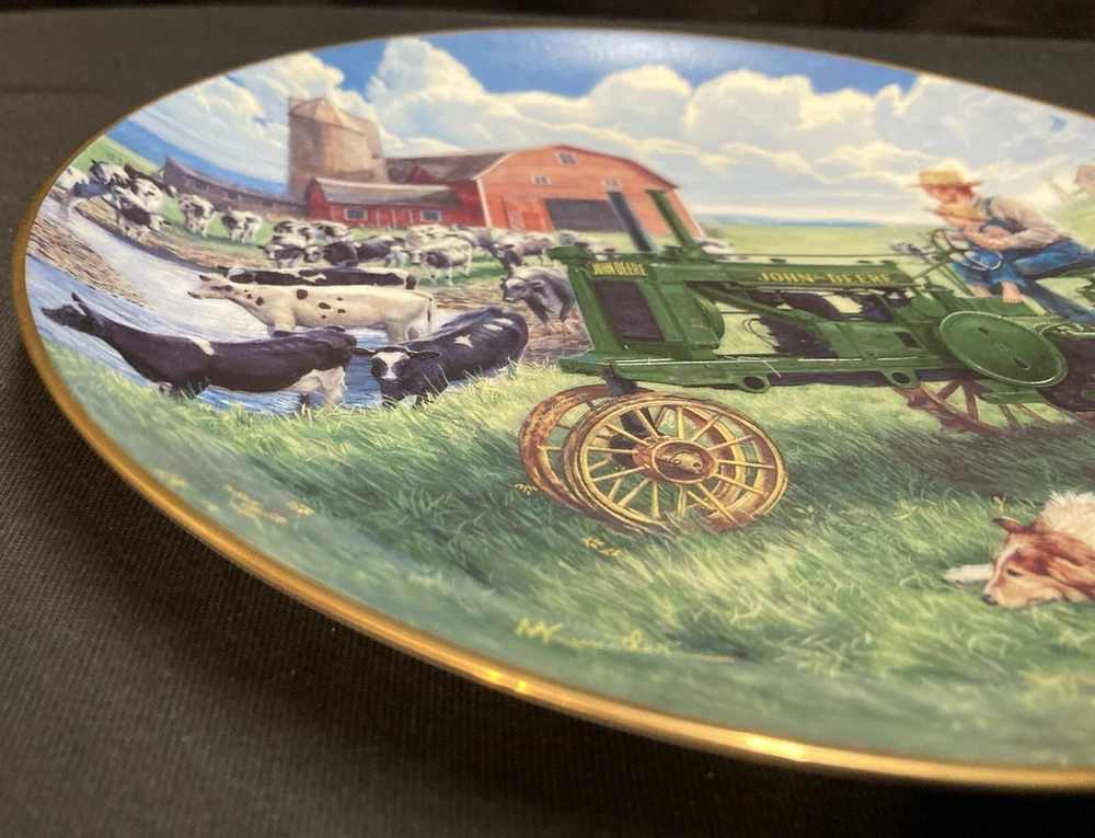 This 8” round collector plate titled “Days of Splendor" by Mort Kunstler captures a nostalgic scene of farming with a John Deere tractor and cows. The plate is pre-owned and comes in good, clean condition with no chips, cracks, or breaks. Please see pictures for details. If you have any questions or concerns, please do not hesitate to contact us. Check out our other items and message us if interested in more than one listing as combining items could save you money on shipping.
