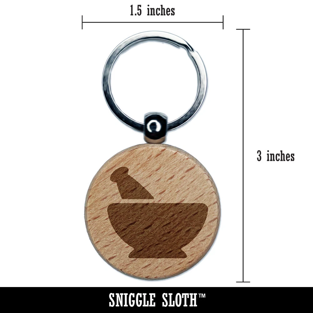 Mortar and Pestle Pharmacy Alchemy Icon Engraved Wood Round Keychain Tag Charm