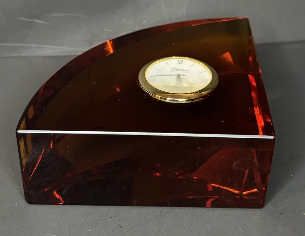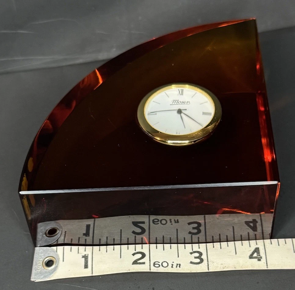 $ 26.4Moser Red Crystal Clock Czech Signed