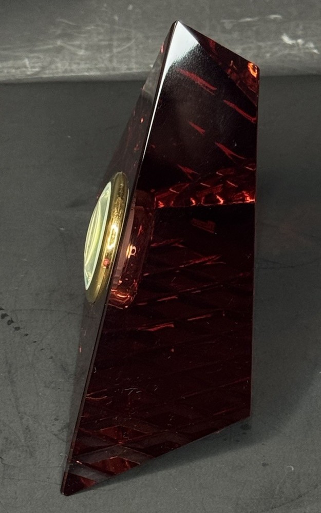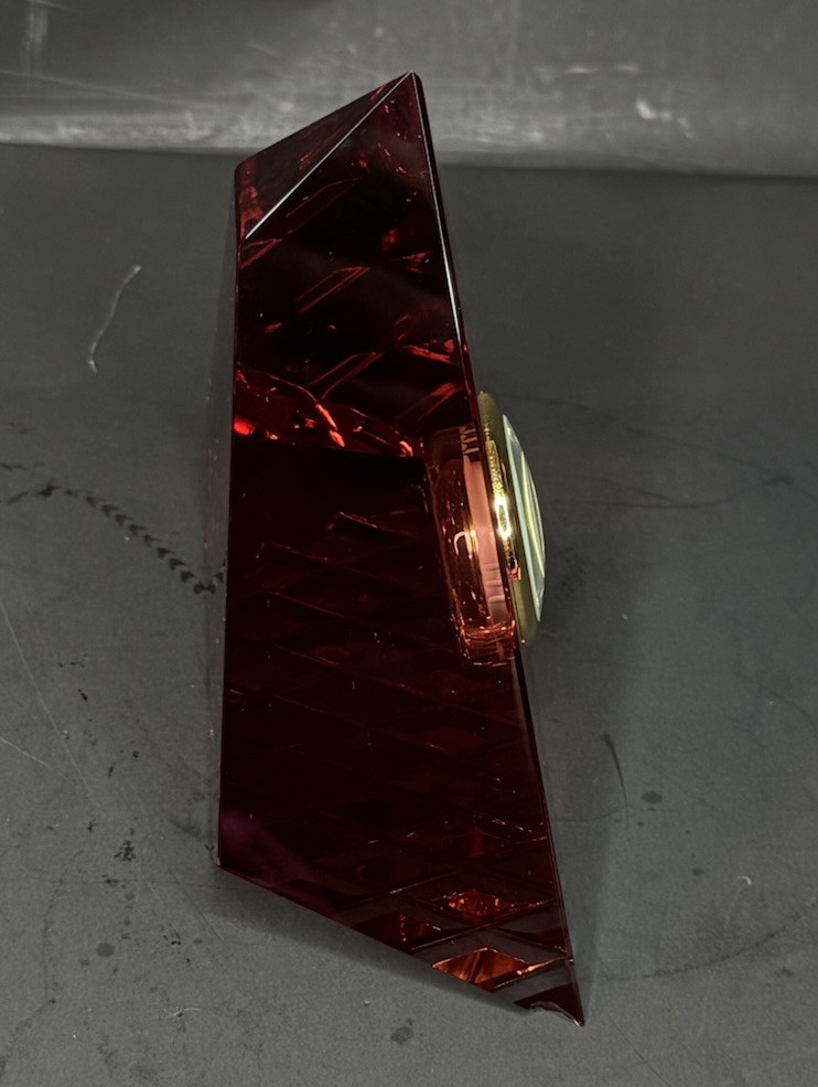 Has a tiny chip shown in pictures Color is like a red orange