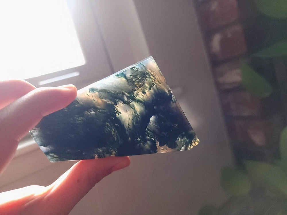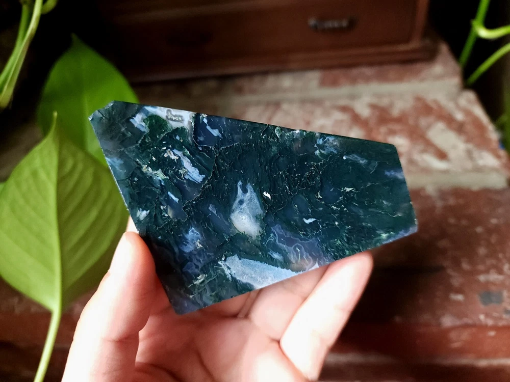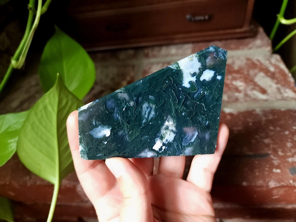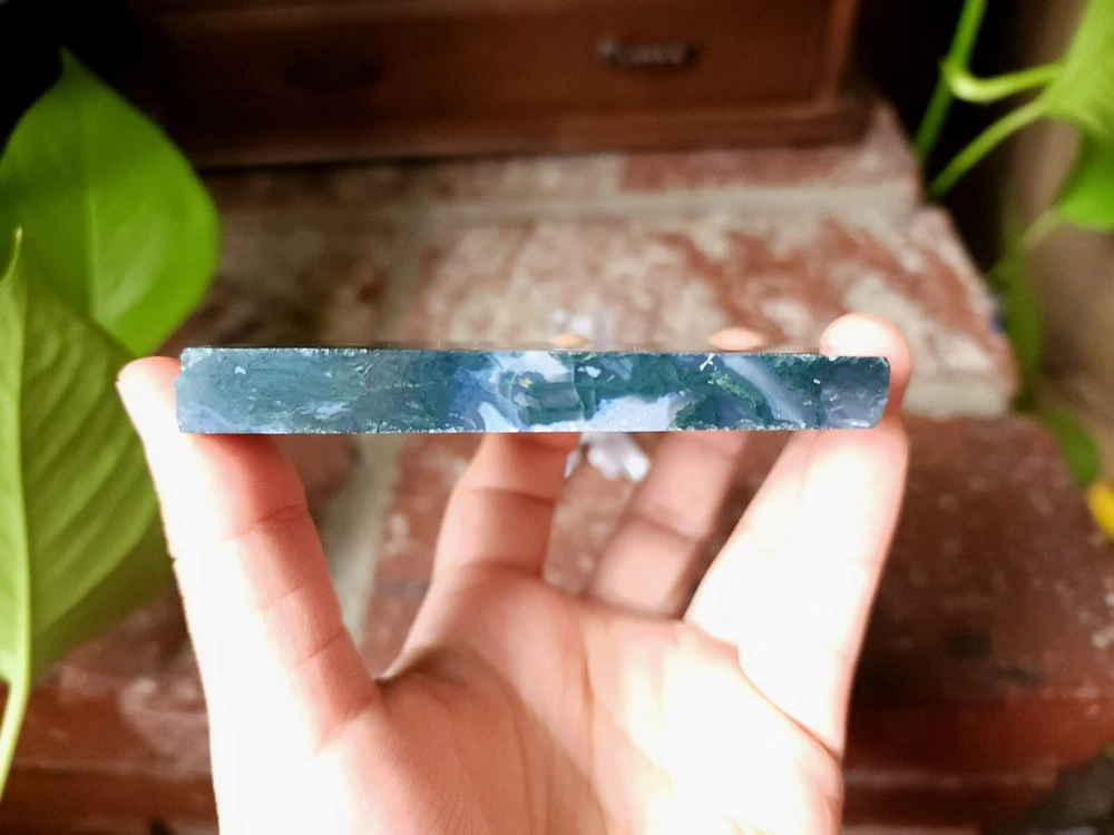 Moss Agate Natural Crystal Slab for Healing and Decor