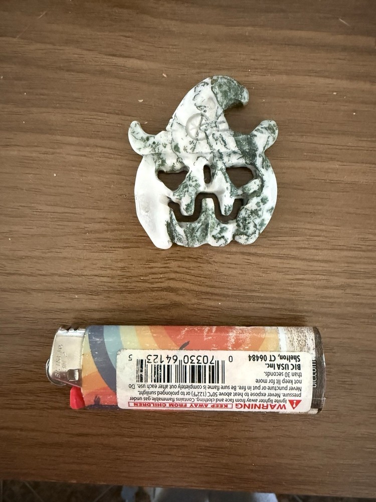 This type of stone is known for its intricate patterns and colors, making it a visually appealing choice for a carved pumpkin. It is a one-of-a-kind design that is sure to stand out from traditional pumpkin carving.