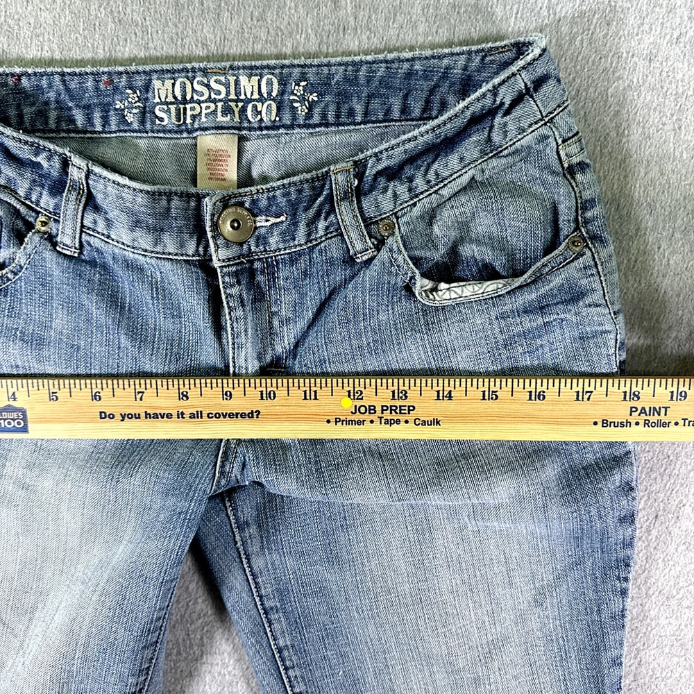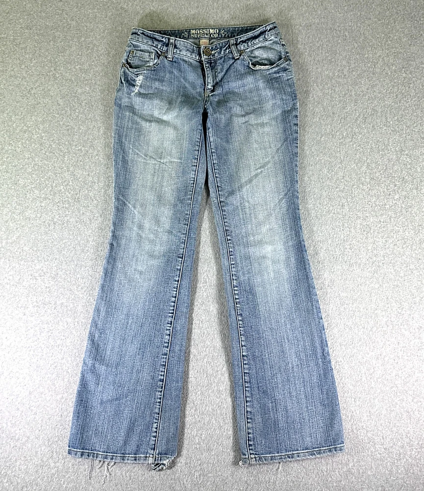 Mossimo Womens Jeans Blue Tag Size 7 (28x33) Low Rise Bootcut Stretch ——-> ((PLEASE NOTE: THE BACK HEMS ARE A LITTLE WEAR)). <——- TRUE SIZE * The measurements we made with a ruler of THE ACTUAL SIZE OF THE PANTS are on photos.* Genre: Female Condition: Pre-Owned Some things to consider: * All our items are inspected several times before we ship to you. If there is an issue, you will find it photographed and described in the condition overview . Please review this very closely to ensure that this item is exactly what you are looking for. * All items are cleaned and stored in a pet-free / smoke-free environment. * Please take a special look to all the measurements we took using a ruler and also the measurements that comes in the item tag for an accurate fit. This saves you the headache of returning an Item that does not fit. we offer 30 day free returns on unused/unworn items. Please compare our measurement photos to your favorite garments to ensure fit. Note, item measurements are approximate and in the photos. Feel free to ask any question about this item. "We ship as soon as possible after the payment has been made"