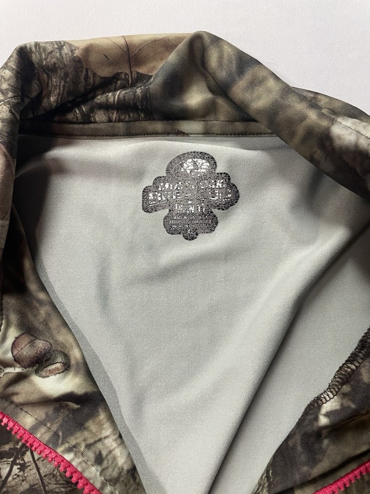 The Mossy Oak Break Up Infinity Pullover Girls XL Camouflage Pink 1/4 Zip Jacket is a stylish and functional piece of clothing perfect for outdoor activities. Made of lightweight polyester material, this jacket features a camouflage pattern in multi-color with a 1/4th zip design and glove sleeves for added warmth. Designed specifically for girls, this pullover is comfortable and practical for hunting, camping, or any other outdoor adventure. Made in Guatemala, this jacket combines quality craftsmanship with a feminine touch for a versatile addition to any wardrobe.