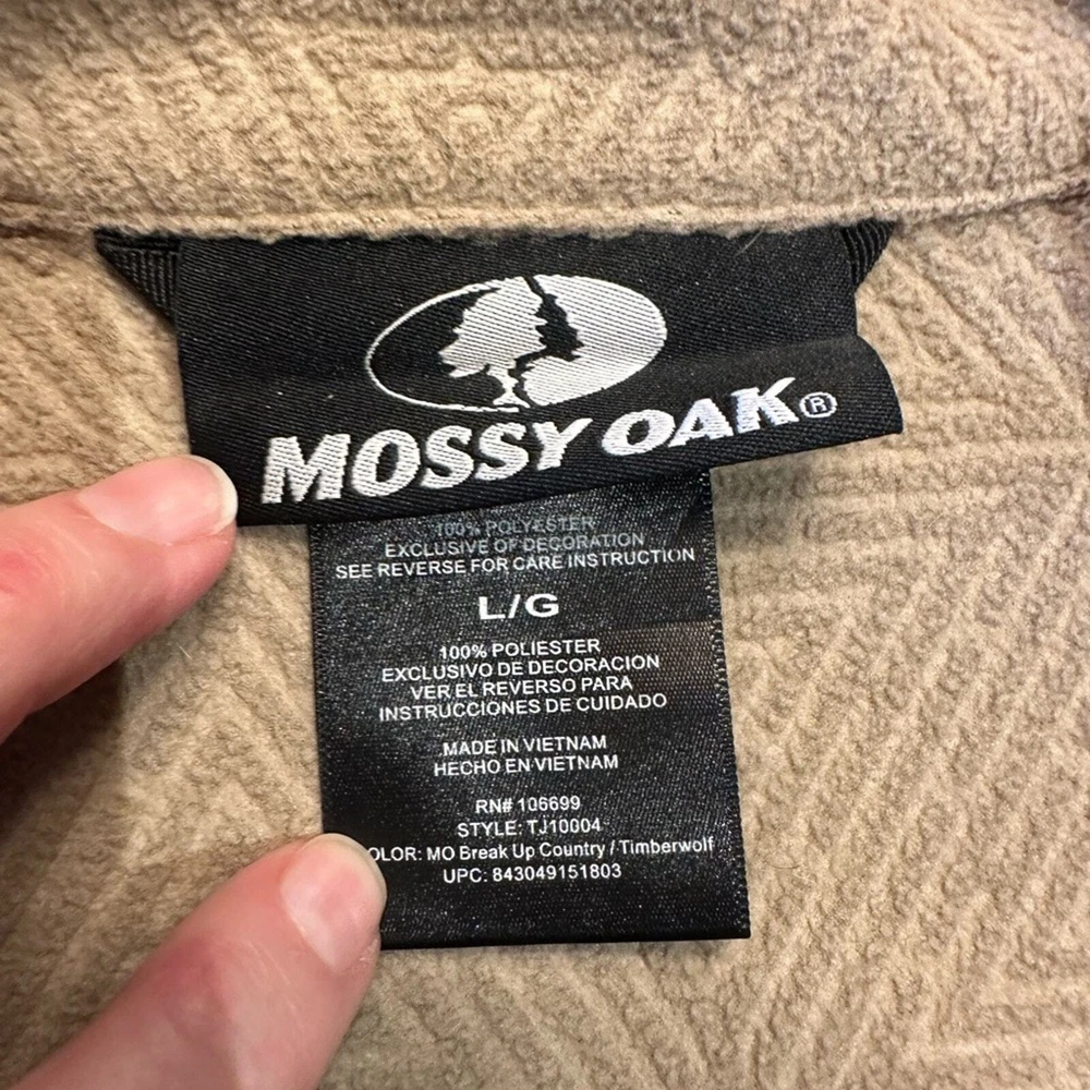 Style: Overcoat Size Type: Regular Color: Brown Size: L Type: Jacket Outer Shell Material: Polyester Department: Men Brand: Mossy Oak