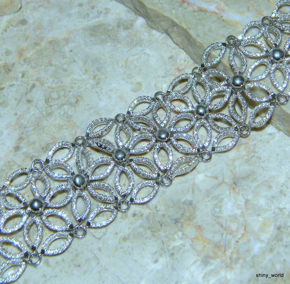 Item Type: Bracelet Weight: 60.g Material: Sterling Silver Main stone: White Topaz Other stones: - Width (widest section): 1 1/4 inch Inner circumference: 7 1/2 inch Clasp: box Stamp / Mark: 925 Condition: New Main color: white