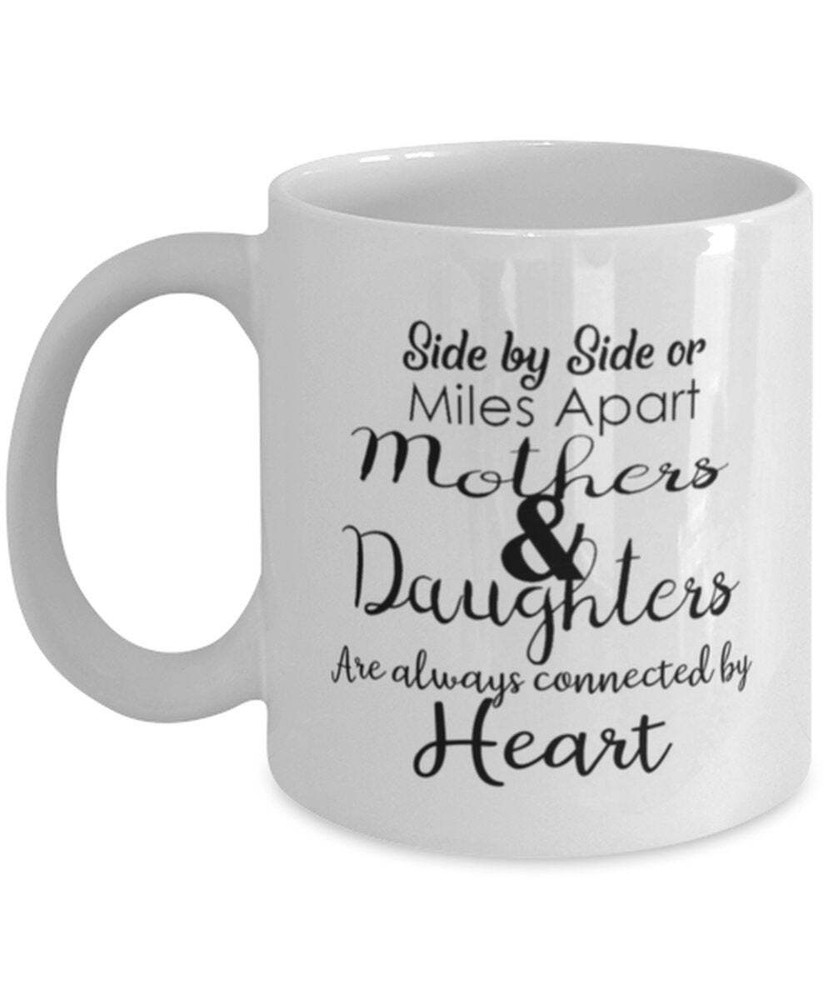 From Daughter Funny Coffee Mug Miles Apart Together At Heart Mother's Day Gift Product Details.. This high quality 11oz. ceramic white mug has a premium hard coat that provides crisp and vibrant color reproduction sure to last for years. Perfect for all hot & cold beverages. The highest quality printing possible is used. It will never fade no matter how many times you wash it. Material: 100% Ceramic. Print both sides. Dishwasher and Microwave Safe. High Gloss + Premium White Finish. Printed in the U.S.A. Personalized & Custom. We support personalized and custom mug to add custom, when placing an order, you can add notes to the "order note" in shipping address section. Also you can contact us directly via message. Shipping Info. Ready to ship in 1 to 2 business days, All products are made-to-order and proudly printed in the United States. Shipped by USPS and DHL, You will receive your order in 5-7 days. Replace & Refund. All products are defective during shipping broken, chipped will be replaced free of charge. You are not satisfied with the product, we will refund 100% money to you. If any other issues arise, please do not hesitate to message, we would be more than happy to assist you.
