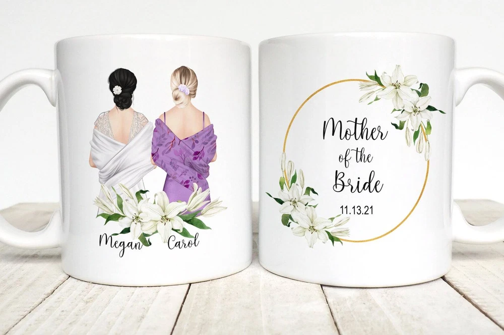 Mother Of The Bride Gift Custom Mother Of The Bride Personalized Mug Gift From Product Details.. This high quality 11oz. ceramic white mug has a premium hard coat that provides crisp and vibrant color reproduction sure to last for years. Perfect for all hot & cold beverages. The highest quality printing possible is used. It will never fade no matter how many times you wash it. Material: 100% Ceramic. Print both sides. Dishwasher and Microwave Safe. High Gloss + Premium White Finish. Printed in the U.S.A. Personalized & Custom. We support personalized and custom mug to add custom, when placing an order, you can add notes to the "order note" in shipping address section. Also you can contact us directly via message. Shipping Info. Ready to ship in 1 to 2 business days, All products are made-to-order and proudly printed in the United States. Shipped by USPS and DHL, You will receive your order in 5-7 days. Replace & Refund. All products are defective during shipping broken, chipped will be replaced free of charge. You are not satisfied with the product, we will refund 100% money to you. If any other issues arise, please do not hesitate to message, we would be more than happy to assist you.
