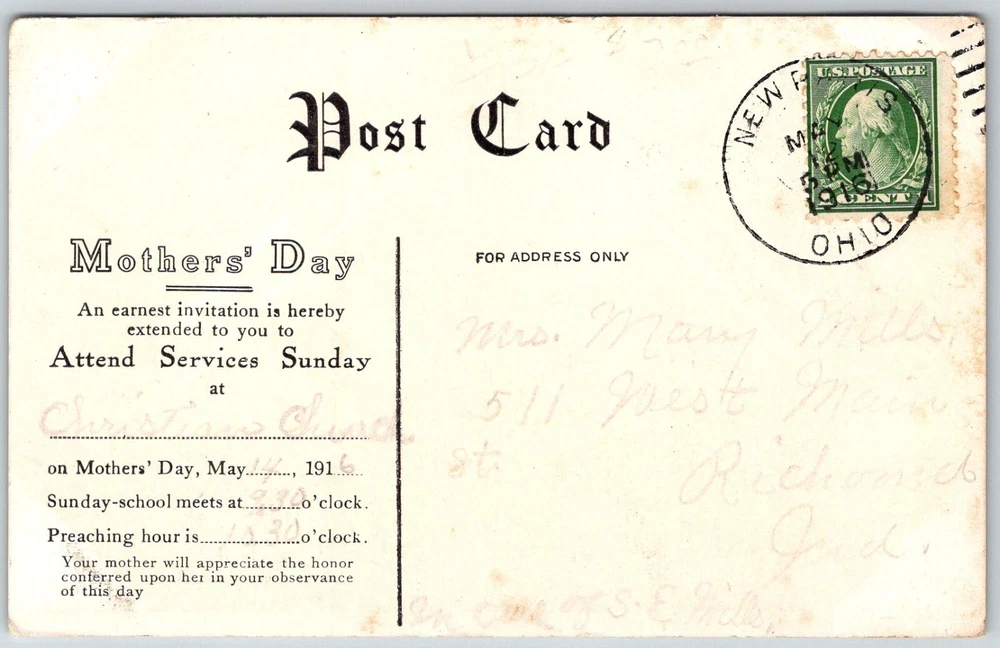 Mothers Day 1916 Postcard Old Fashioned Photograph Mother Most Dear