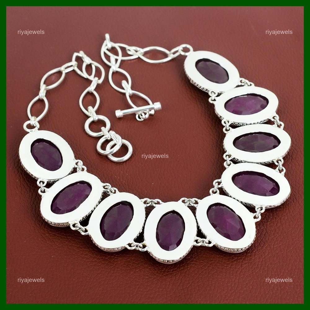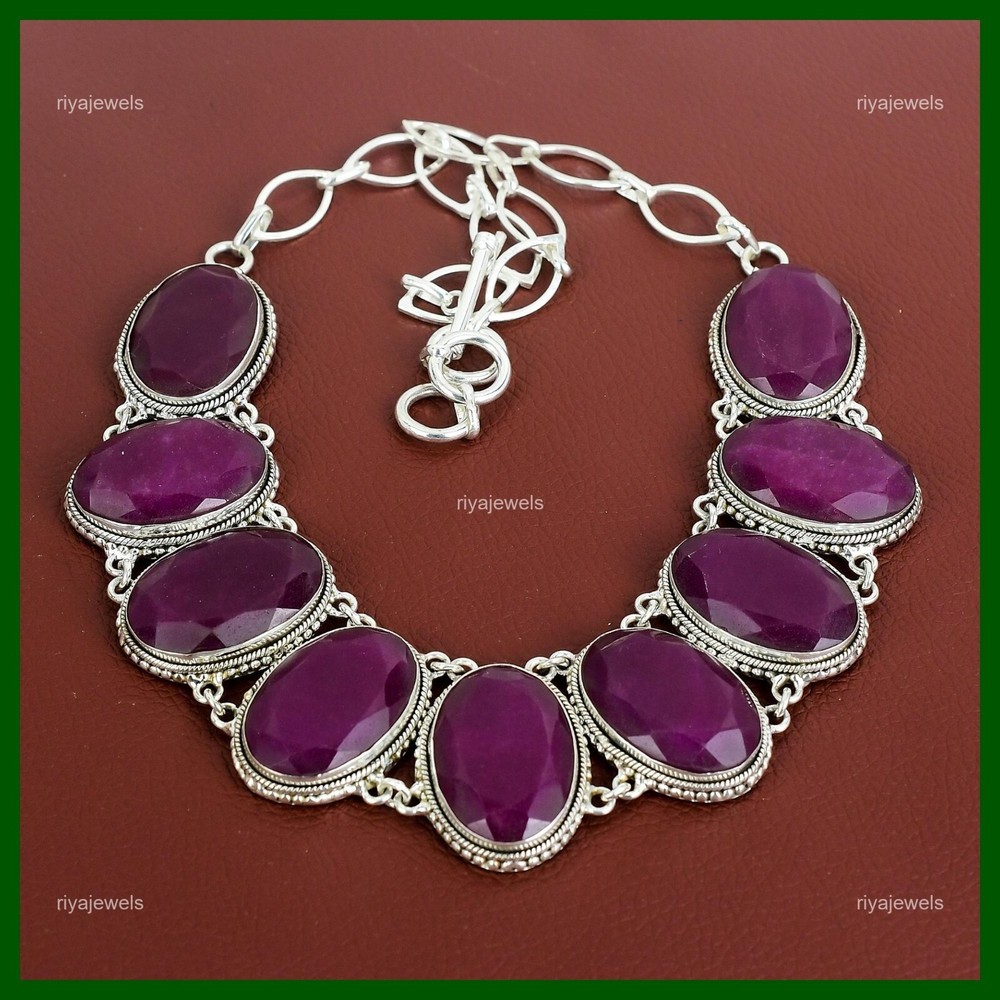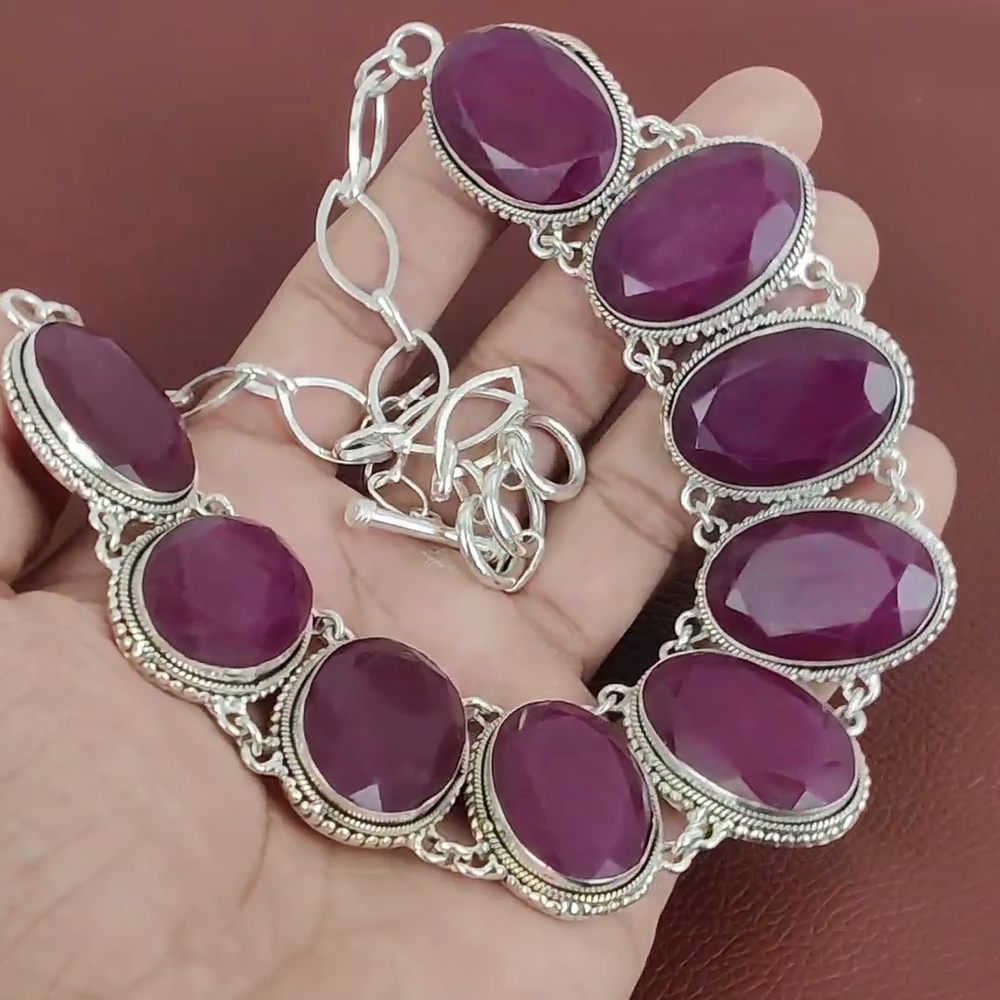 Note : Due to the natural formation of this gemstone. Slight variation in design and color are to be expected. Welcome to Riyajewels Mothers day Sale 925 Silver Kashmir Rubi Gemstone Vintage Chain Necklace Jewelry Handmade Necklace, Sterling Silver Necklace, Kashmir Rubi Necklace, Handcrafted Necklace SKU : PN-1358 Gemstone : Kashmir Rubi Stone Shape : Oval Metal Purity : 925 Sterling Silver Necklace Length : 18 Inches Adjustable : Yes Silver Jewelry is a popular choice for many people due to its unique properties and numerous benefits. Here are some of the key properties and benefits of wearing silver jewelry: Properties: Durability: Silver is a durable metal that can withstand regular wear and tear. Malleability: Silver is highly malleable, which means it can be easily shaped and molded into various designs. Conductivity: Silver is an excellent conductor of heat and electricity. Anti-bacterial: Silver has natural anti-bacterial properties, which can help prevent the growth of harmful bacteria. Benefits: Aesthetic appeal: Silver jewelry is known for its beauty and versatility, and can be worn with a variety of outfits and styles. Hypoallergenic: Silver is generally hypoallergenic, which means it is unlikely to cause an allergic reaction in most people. Healing properties: Some people believe that wearing silver jewelry can help with various physical and emotional conditions, such as arthritis, anxiety, and depression. Spiritual significance: Silver has been used in various cultures for its spiritual and symbolic significance, and wearing silver jewelry can help to connect with these traditions. Investment value: Silver is a precious metal that retains its value over time, and investing in silver jewelry can be a smart financial decision. Overall, silver jewelry offers a unique combination of beauty, durability, and benefits, making it a popular choice for people around the world. For Mother's Day Gift For Father's Day Gift For Promise For Valentine' Day For Halloween Party For Christmas Day Gift For New Year Party For Mom For Her If you can't find the information you need or need some advice for your design? Feel free to contact us. We are fast to reply :) All our work is made by hand with Love and Care in our workshop Thank you so much for visiting and hope you enjoy shopping with us Riyajewels is dedicated to providing customers with high-quality sterling silver jewelry. As a manufacturer of handmade jewelry, we offer an extensive range of silver gemstone jewelry that demonstrates our exceptional craftsmanship. We are skilled in adorning gemstones to complement any style, and we give you the freedom to design your own jewelry collection with dazzling, natural, and genuine gemstones. Our talented craftsmen carefully handcraft each jewelry piece, ensuring that it is unique and made with authentic gemstones.