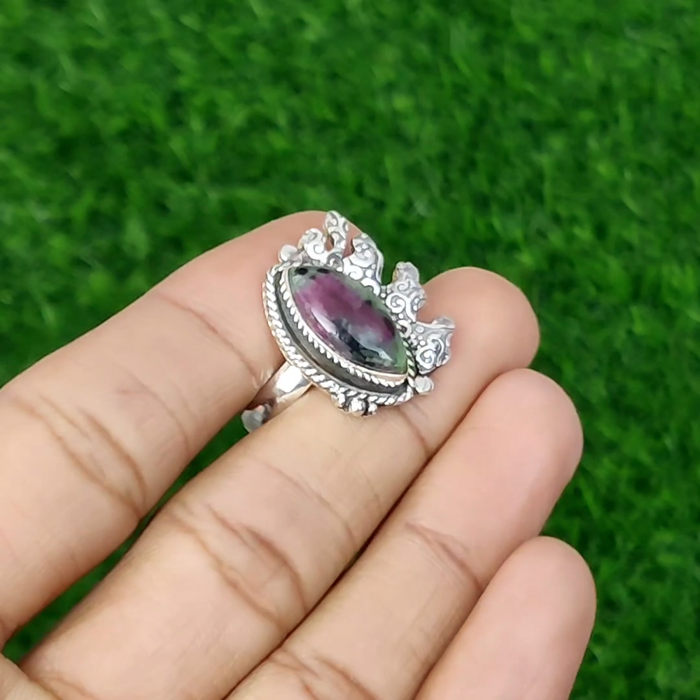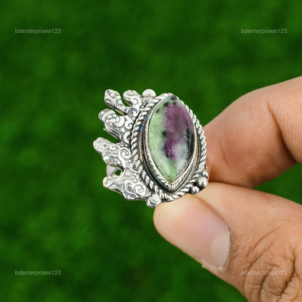 Welcome to bdenterprises123 Mothers day Deal 925 Silver Ruby Zoisite Gemstone Bezel Statement Ring Jewelry Handmade Ring, Sterling Silver Ring, Ruby Zoisite Ring, Handcrafted Ring SKU : CR-1940 Gemstone : Ruby Zoisite Stone Shape : Marquise Metal Purity : 925 Sterling Silver Ring Size : Adjustable US Adjustable : Yes Silver Jewelry is a popular choice for many people due to its unique properties and numerous benefits. Here are some of the key properties and benefits of wearing silver jewelry: Properties: Durability: Silver is a durable metal that can withstand regular wear and tear. Malleability: Silver is highly malleable, which means it can be easily shaped and molded into various designs. Conductivity: Silver is an excellent conductor of heat and electricity. Anti-bacterial: Silver has natural anti-bacterial properties, which can help prevent the growth of harmful bacteria. Benefits: Aesthetic appeal: Silver jewelry is known for its beauty and versatility, and can be worn with a variety of outfits and styles. Hypoallergenic: Silver is generally hypoallergenic, which means it is unlikely to cause an allergic reaction in most people. Healing properties: Some people believe that wearing silver jewelry can help with various physical and emotional conditions, such as arthritis, anxiety, and depression. Spiritual significance: Silver has been used in various cultures for its spiritual and symbolic significance, and wearing silver jewelry can help to connect with these traditions. Investment value: Silver is a precious metal that retains its value over time, and investing in silver jewelry can be a smart financial decision. Overall, silver jewelry offers a unique combination of beauty, durability, and benefits, making it a popular choice for people around the world. For Mother's Day Gift For Father's Day Gift For Promise For Valentine' Day For Halloween Party For Christmas Day Gift For New Year Party For Mom For Her If you can't find the information you need or need some advice for your design? Feel free to contact us. We are fast to reply :) All our work is made by hand with Love and Care in our workshop Thank you so much for visiting and hope you enjoy shopping with us bdenterprises123 is dedicated to providing customers with high-quality sterling silver jewelry. As a manufacturer of handmade jewelry, we offer an extensive range of silver gemstone jewelry that demonstrates our exceptional craftsmanship. We are skilled in adorning gemstones to complement any style, and we give you the freedom to design your own jewelry collection with dazzling, natural, and genuine gemstones. Our talented craftsmen carefully handcraft each jewelry piece, ensuring that it is unique and made with authentic gemstones. The jewelry item you see on our website is precisely the same one you will receive.