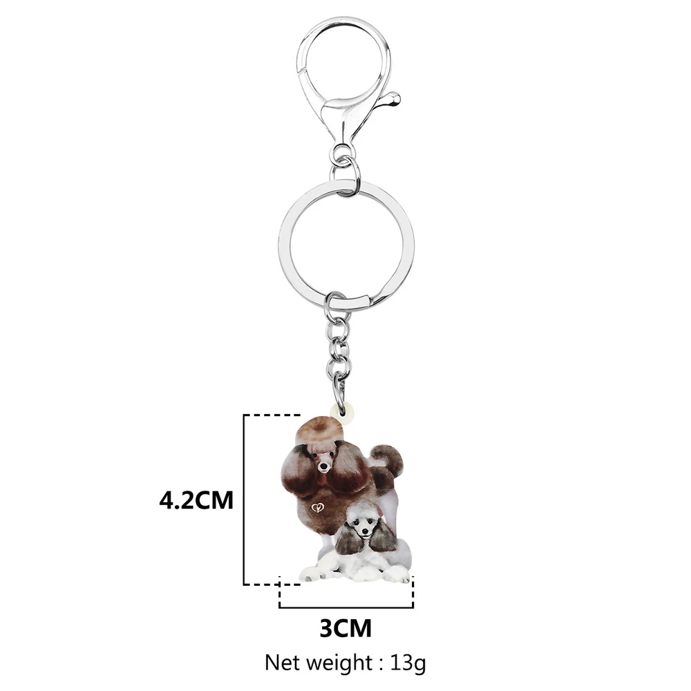 Lightweight, nickel free. Hypoallergenic, made of acrylic. Design inspired from DOG. Acrylic Mother's Day cute Poodle dog keychains keyrings. PERFECT GIFT - Appropriate gifts for women, girls, girlfriends, wife, mom, daughter . S uitable for Mother's Day, Christmas, Easter, Valentines, Thanksgiving Day, birthday, family gathering, graduation season, back to school season, spring outing, etc. Novelty Poodle dog accessories for car keys, purse, wallet, bag, backpack, handbag, phone, etc. Keychain weight: 13g Charms size: 42mm x 30mm approximately 1.65"tall &1.18"width