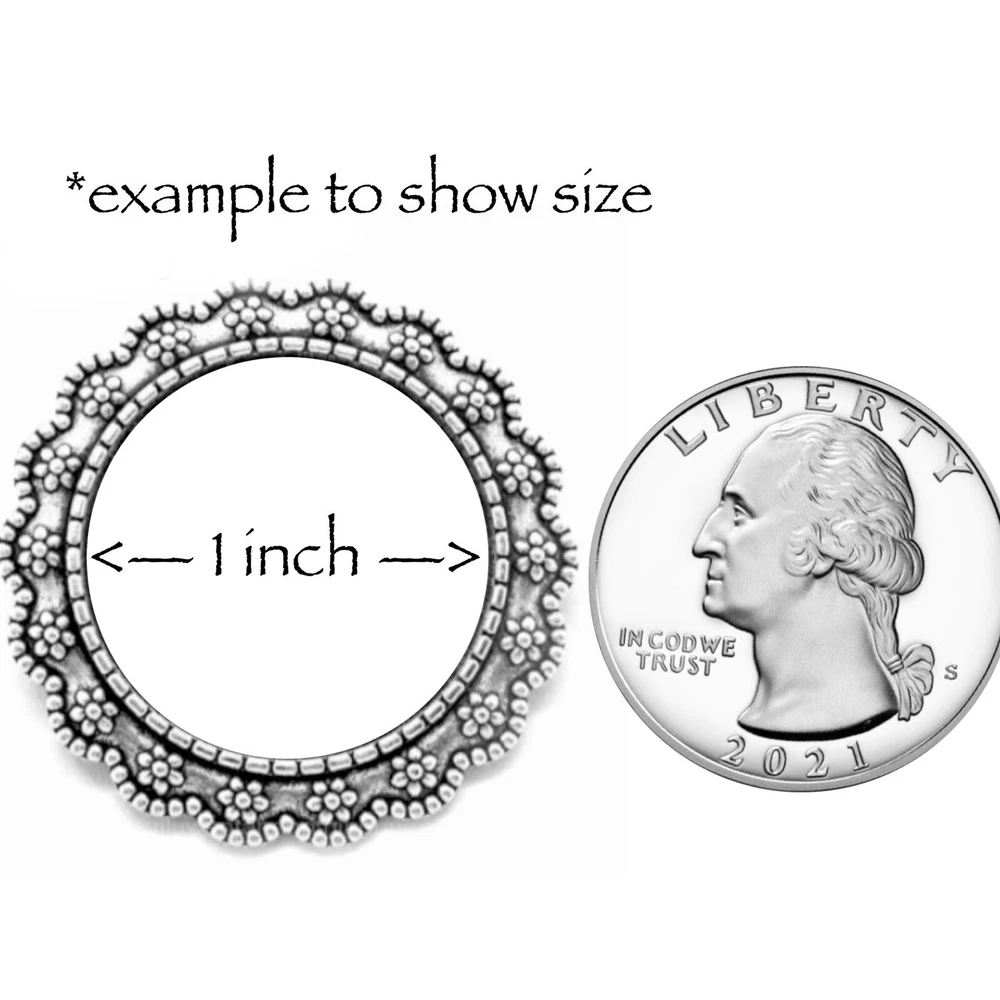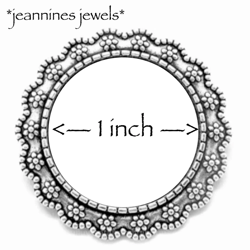Main Stone Color: Multicolor Main Stone Shape: Round Brand: Jeannines Jewels Shape: Round Color: Multicolor Item Length: 1.3 Inches Country/Region of Manufacture: United States Type: Brooch Country of Origin: United States Features: Nickel-Free, Handcrafted Metal: Silver Plated Setting Style: Bezel Material: Art Print, Antique Silver Plate Over Pewter, Jewelers Resin Theme: Art, Flowers & Plants, Grandmother Gift, Gift For Mother, Mothers Day