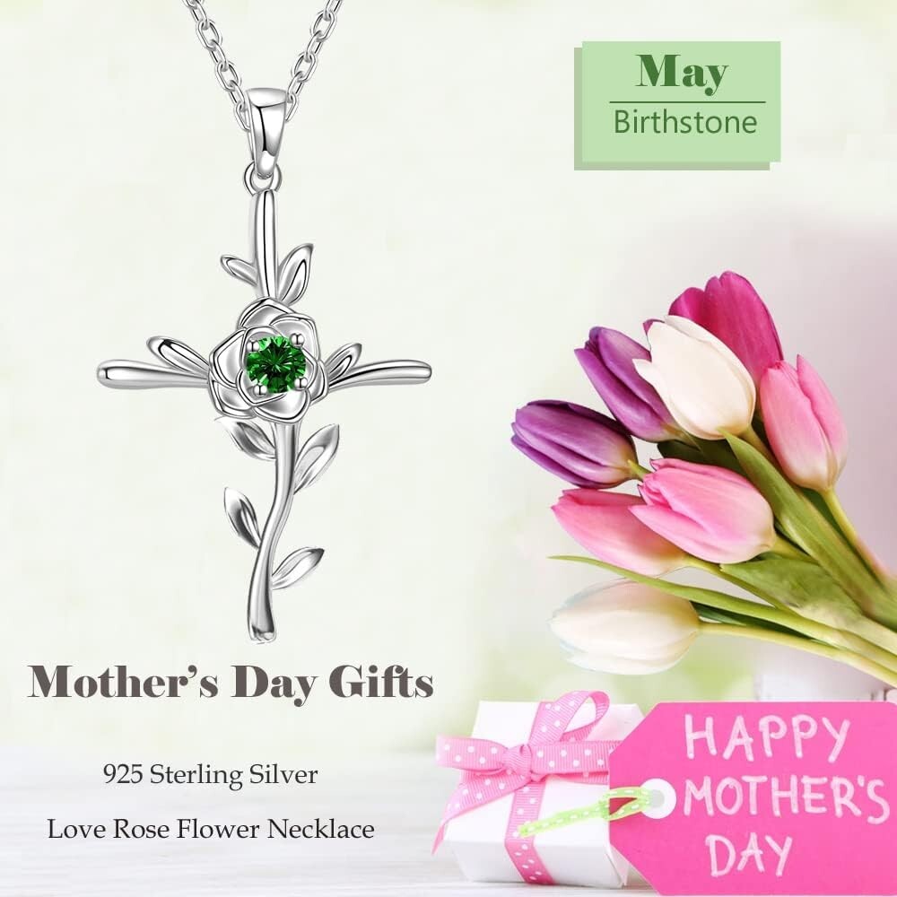 Mothers Day Birthday Gifts for Wife Mom May June July Birthstones Jewelry for Women Love Rose Hope Leaves Necklace Emerald Pearl Ruby Sapphire Necklace and More Stones 925 Sterling Silver ❤️ May Birthstone Necklace for Women - Round brilliant May birthstone Green Emerald setting in the center of unique designed love rose pendant means "You are the only one in my heart". ❤️ Love Rose Flower Jewelry for Women - Rose always love symbol express your love to Her. Leaves meaning hope and strong vitality. The meaningful love rose necklace is an ideal gift for wife. The never fade rose will tell her all of your love. ❤️ Mothers Day Gifts Jewelry for Her - The exquisite sterling silver metal and the special designed love rose hope leaves necklace make it an elegant addition to the Jewelry collection as wedding annivresary gifts for wife. ❤️ Birthday Gifts for Women - Comes in pretty navy blue gift box. Perfect gift ideals for Mom, wife, grandma and any important lady for her birthday, mother's day, anniversary, valentine's day, engagement, wedding, Christmas gifts or any special moment. ❤️Love Rose Pendant Size - The pendant size is " x " ( 38 x 24mm). The changeable chain length is adjustable from 18" to 20". Both pendant and chain made of solid sterling silver. Product details Item width inches Material Stone Metal type Sterling Silver Clasp type Lobster Gem type Emerald About this item ❤️ May Birthstone Necklace for Women - Round brilliant May birthstone Green Emerald setting in the center of unique designed love rose pendant means "You are the only one in my heart". ❤️ Love Rose Flower Jewelry for Women - Rose always love symbol express your love to Her. Leaves meaning hope and strong vitality. The meaningful love rose necklace is an ideal gift for wife. The never fade rose will tell her all of your love. ❤️ Mothers Day Gifts Jewelry for Her - The exquisite sterling silver metal and the special designed love rose hope leaves necklace make it an elegant addition to the Jewelry collection as wedding annivresary gifts for wife. ❤️ Birthday Gifts for Women - Comes in pretty navy blue gift box. Perfect gift ideals for Mom, wife, grandma and any important lady for her birthday, mother's day, anniversary, valentine's day, engagement, wedding, Christmas gifts or any special moment. ❤️Love Rose Pendant Size - The pendant size is " x " ( 38 x 24mm). The changeable chain length is adjustable from 18" to 20". Both pendant and chain made of solid sterling silver. See more About this item
