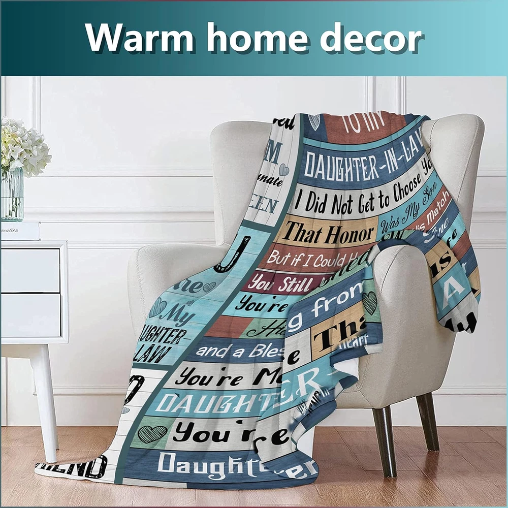 Mothers Day Blanket Gifts for Daughter in Law, Daughter in Law Gifts, Gifts for Daughter in Law, Daughter in Law Gifts from Mother in Law, Daughter in Law Birthday Gifts Throw Blanket 60"X 50" ❉Perfect Gift to Daughter-in-law: This super-soft flannel blanket is designed for a thoughtful caring personal gift for a daughter-in-law from the mother-in-law. The intent of this blanket is not only to bring warmth but also to bring a smile, courage, and a feeling of love. You can use it as a Birthday Engagement Christmas wedding Valentine's Day Gifts for Daughter-in-law ☃Material and Size: This daughter-in-law blanket height:60 inch width:50 inch. Blanket features a premium ultra-soft polyester fabric, It retains its beautiful color even after washing. Suitable for use all year round ♨Applicable Scene: Suitable for all seasons, indoor and outdoor use.Ideal for airplane, camping, sofa, bed, outdoors and car. Give this blanket as a gift to Christmas, daughter's-in-law birthday, and other family holidays, which is the best choice. ☀Ideal Gift of Holiday: This beautiful blanket is printed with a special meaning message and is perfect for a mother's gift to her daughter-in-law on birthdays, Valentine's Day, Christmas, anniversaries, weddings, and more ☽Easy Wash & Care: this flannel blanket is made of polyester fabric that you can wash with a washing machine, but you should notice that do not use bleach and avoid direct heat, please dry it on low heat. Product Description Luxury Flannel A lightweight blanket has just the right weight. It's light and breathable to keep you warm and cozy but won't be too hot. Premium microfiber that is silky smooth to touch, perfect for all-season use. Caring Words Inspiring words like a warm embrace that delivers your love and caring support to your Daughter-IN-LAW, soothing her soul, bringing her a beautiful mood, and recharging her spirit Exquisite Edges Every detail of the flannel blanket is perfect, double-stitched are neat and strong, making the bed blanket more beautiful and practical, and will hold up nicely after every wash. No pilling, fading, or shrinking. Multi Purpose Blanket This soft flannel blanket is a thoughtful personal gift from a mother-in-law to her daughter-in-law to provide warmth in all seasons and can be used as a bed blanket, bedroom, dormitory, sofa, picnic, beach, camping, travel, snuggle while watching TV or reading, or nap on the sofa. Mother-in-law to daughter-in-law perfect gift, for Birthday gift, Anniversary gift, Christmas gift, Wedding gift, Valentine's Day gift, Mother's Day gift, holiday gift, etc. Item model number Daughter in Law Style Modern Number of Items 1 Pattern Abstract Country of Origin China Blanket Form Single Layered Blanket Theme Wedding Unit Count 1.0 Count Product Dimensions 60"L x 50"W Material Polyester Model Name Blue 50x60 inch Seasons All Item Thickness 0.5 Inches Age Range (Description) Adult Item Weight 1.1 pounds Special Feature 亲肤 Fabric Warmth Description Lightweight Color Blue#daughter in Law Recommended Uses For Product Travel, Napping, Camping Sport Camping Fabric Type Flannel Product Care Instructions Machine Wash Size 50x60 inch Shipping Fast shipping is very important for us. Our standard US shipping service is FREE. Your order will be shipped within 2-3 business days upon full payment received. Your order will be delivered within 2-3 business days after the handling time. We only ship to the confirmed PayPal address. We reserve the right to cancel any order for any reason at any time. We are not responsible for undeliverable addresses. Returns and payment We offer a 30 days return policy from checkout winning date. We allow only PayPal as payment method FeedBack Your feedback very important to us, after you get your package and you are satisfied with our service please leave us positive feedback If you have any problem with your order / any questions please before leave any type of feedback For any questions, using eBay contact system Please visit our eBay store to check out other items for sale! Thank you for shopping at our store.