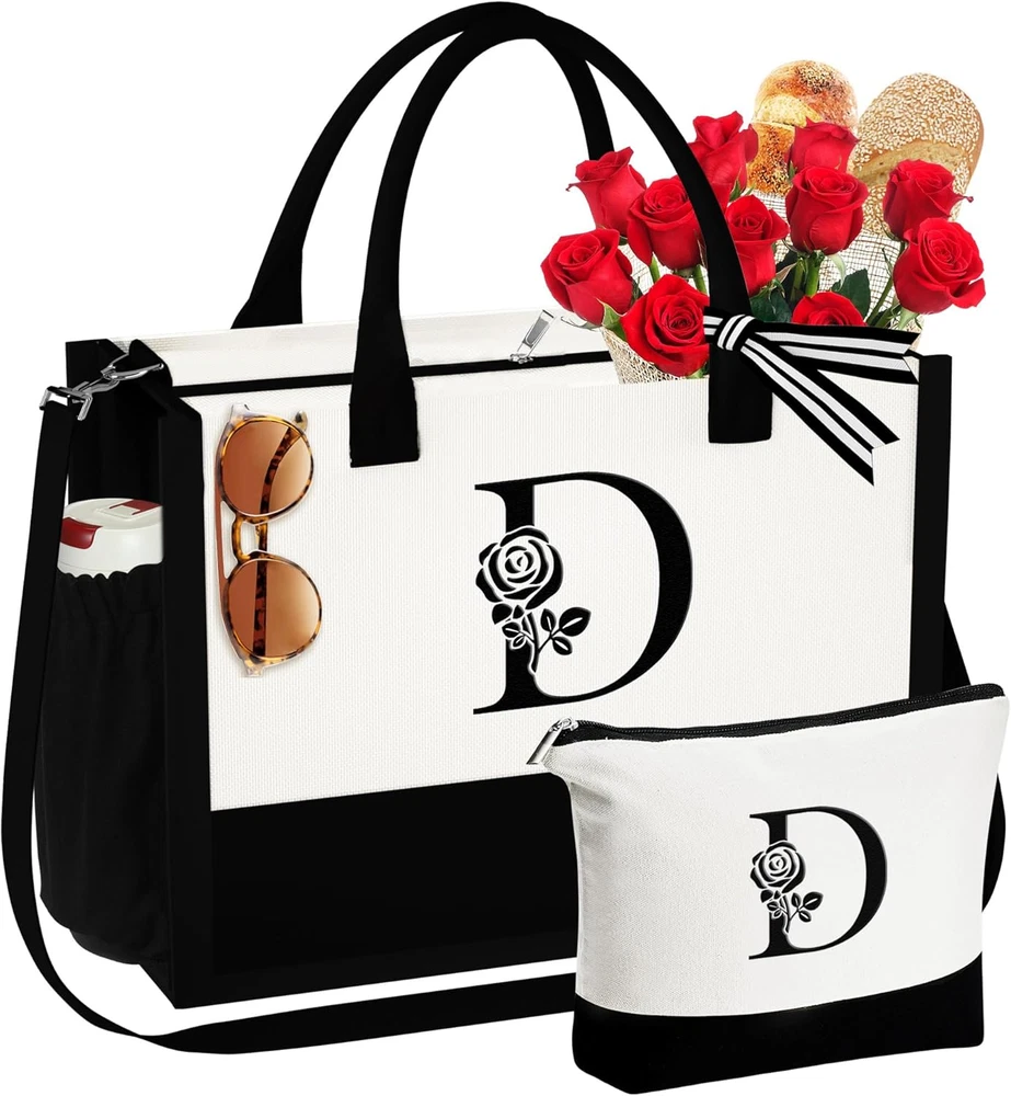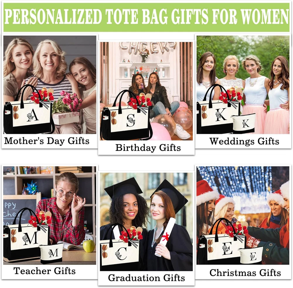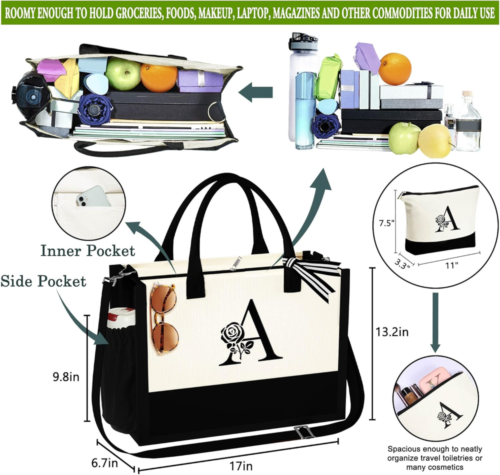 Absolutely love this personalized set! The canvas tote is roomy and sturdy, perfect for beach trips or shopping, and the matching makeup bag keeps everything organized. Great quality and such a thoughtful gift for any special woman in your life.