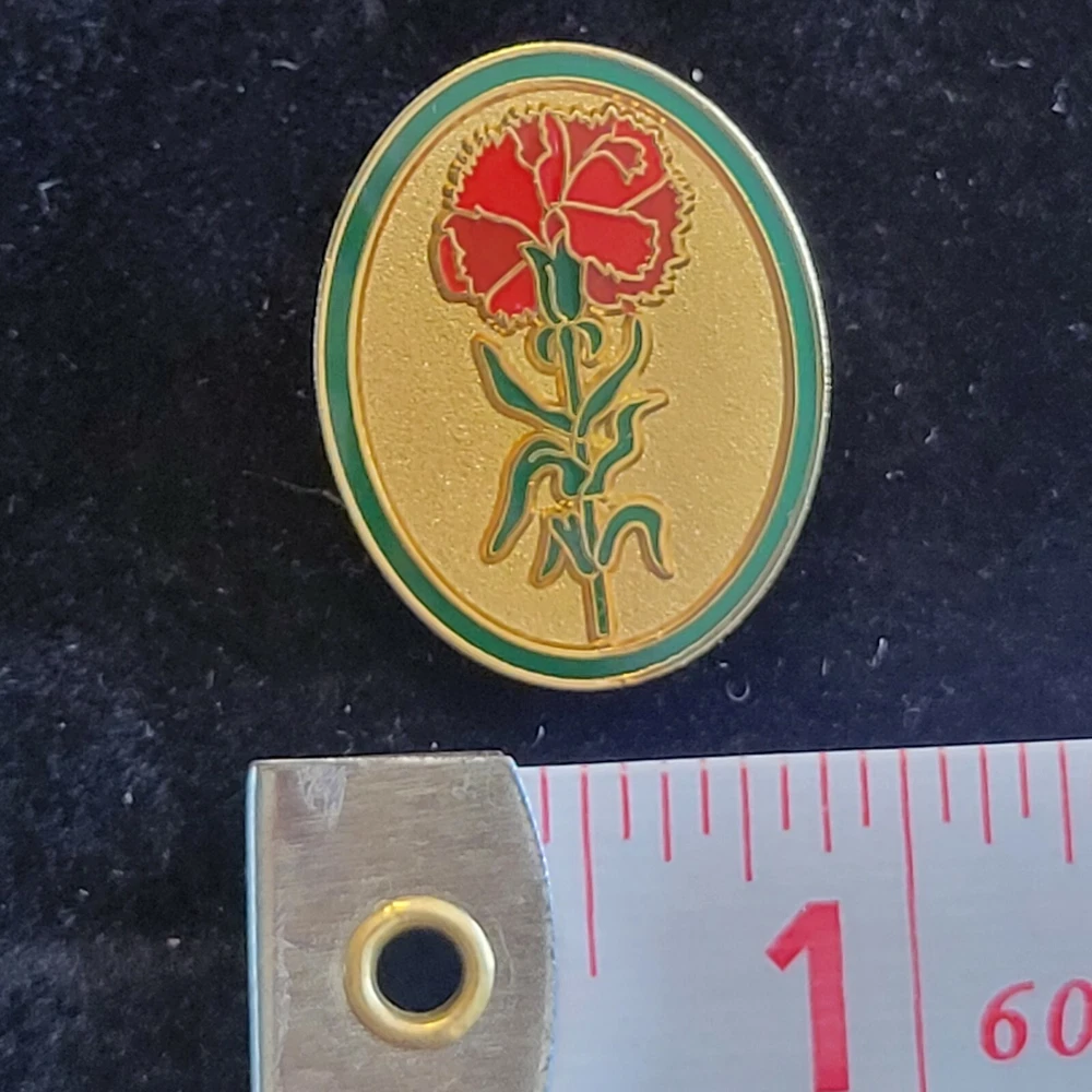 Mothers Day Carnation Oval gold tone red Flower pin Gold tone 0.75" metal pin Mother's Day was almost universally observed before 1914, as most states had observances, but the date sometimes varied. Traditionally, vendors sold carnations for churchgoers to wear, red for those whose mother was living and white for those whose mother had died. President Woodrow Wilson, on Saturday, May 9, 1914, made the official announcement proclaiming Mother's Day a national observance to be held each year on the 2nd Sunday of May, thereby making May 10, 1914 the first national Mother’s Day. Add to your collection or replace a pin with our large variety of pins available. "See other items" or click "Visit Store" to find more items like this. Please review all photos. From a smoke free home. Please ask any questions BEFORE placing your order. Returns only accepted if I have grossly misrepresented an item in photos and description. ***Thank you to all of our customers as we enjoy more than 20 years on eBay 💕***!